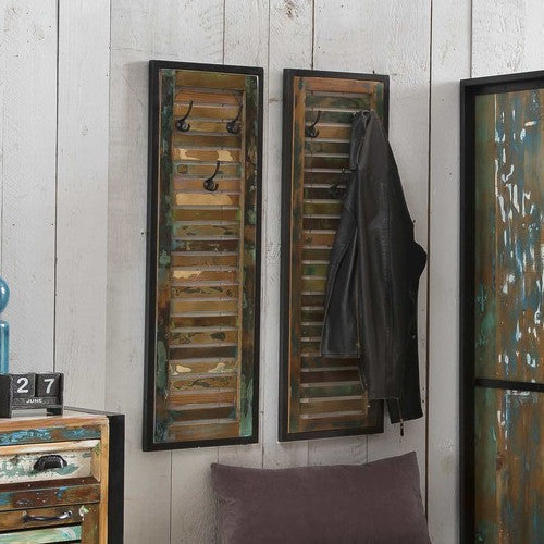 Mobili realizzati con legno riciclato trattato e recuperato per creare ambienti con uno stile industrial allegro e colorato.