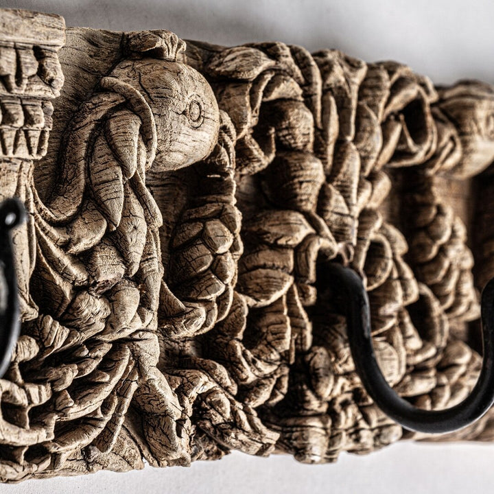 Appendiabiti Etnico in Legno di Teak Intagliato e Ferro Nero