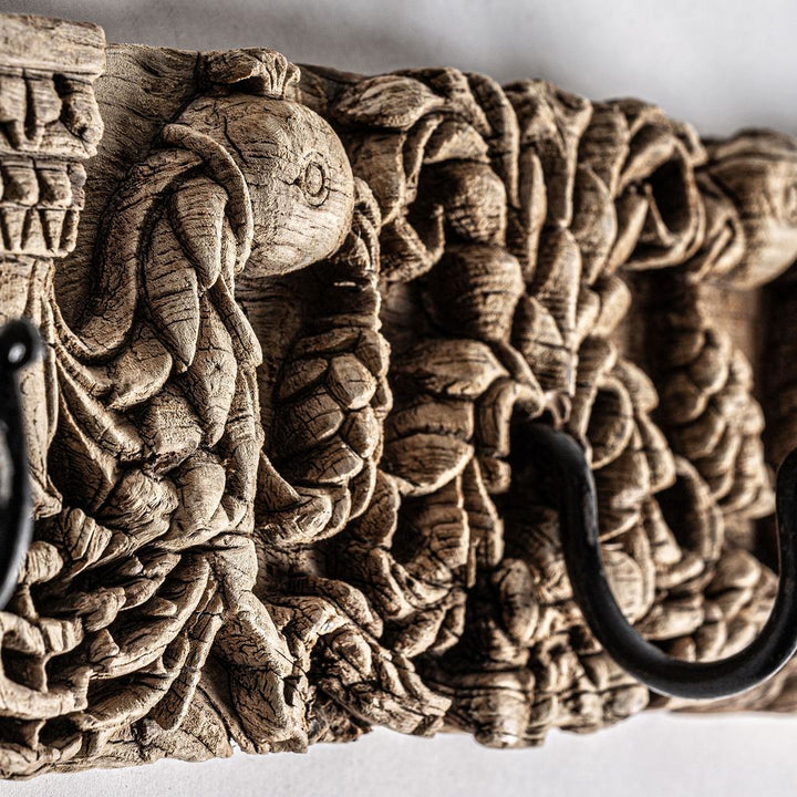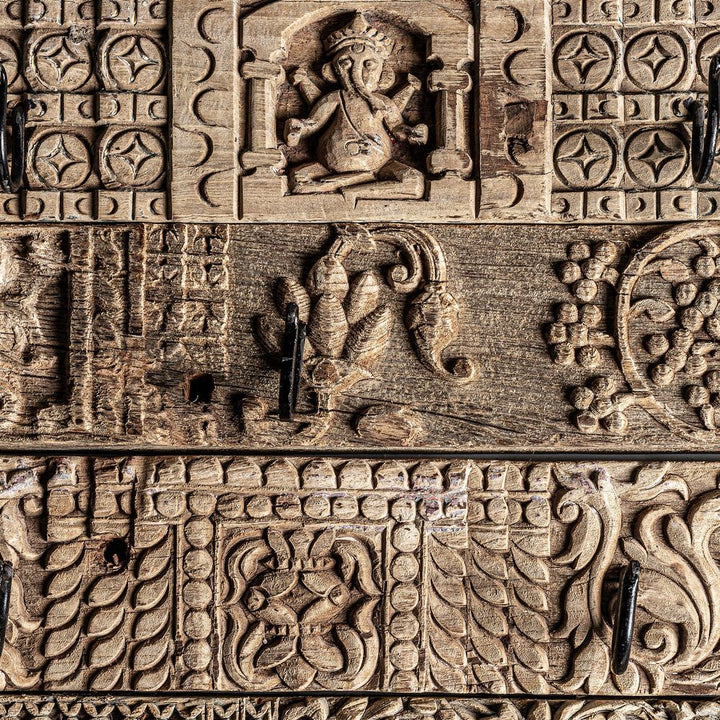 Appendiabiti Etnico in Teak Intagliato e Ferro Nero