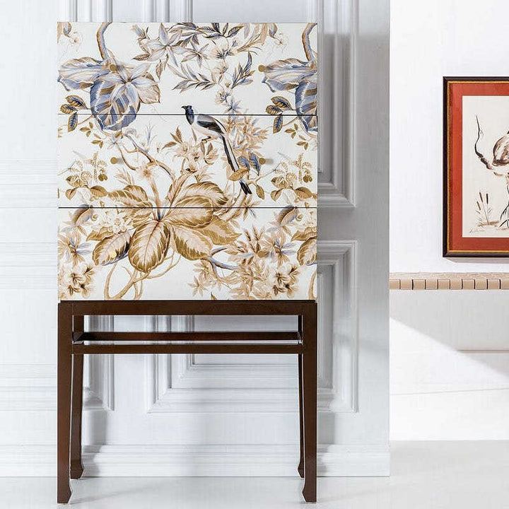 Lo stile Barocco floreale si fonde con la modernità in questo armadio chic, realizzato in legno di abete. Con tre cassettoni spaziosi, offre un'elegante soluzione di stoccaggio, perfetta per arricchire qualsiasi ambiente con un tocco di raffinatezza storica. Le gambe alte aggiungono leggerezza al design, garantendo al contempo stabilità e stile. I dettagli floreali intricati esaltano la bellezza del mobile, rendendolo un pezzo unico che combina tradizione e funzionalità. Ideale per chi cerca un arredo che unisca eleganza e praticità, questo armadio floreale barocco dona carattere e distinzione al tuo spazio.