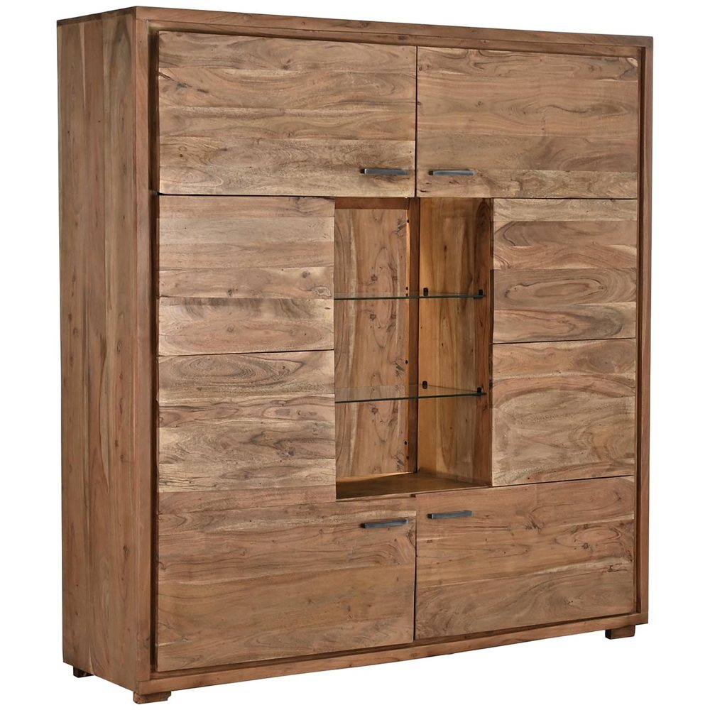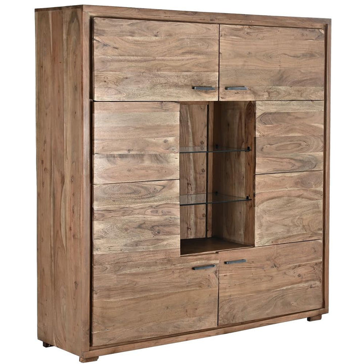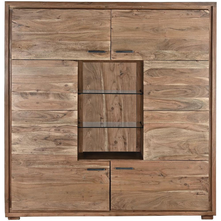 Armadio Buffet in Legno di Acacia e Cristallo