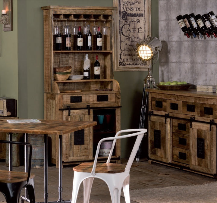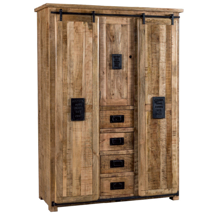 L'armadio è un ottimo esempio di design industriale, che unisce funzionalità e stile. Realizzato in legno massello di mango e ferro, offre 3 ante e 4 cassetti per un'ottima organizzazione degli spazi. Questo guardaroba è ideale per chi cerca armadi stile industriale online, portando un pezzo distintivo e affascinante nella propria casa, perfetto per arricchire qualsiasi ambiente.