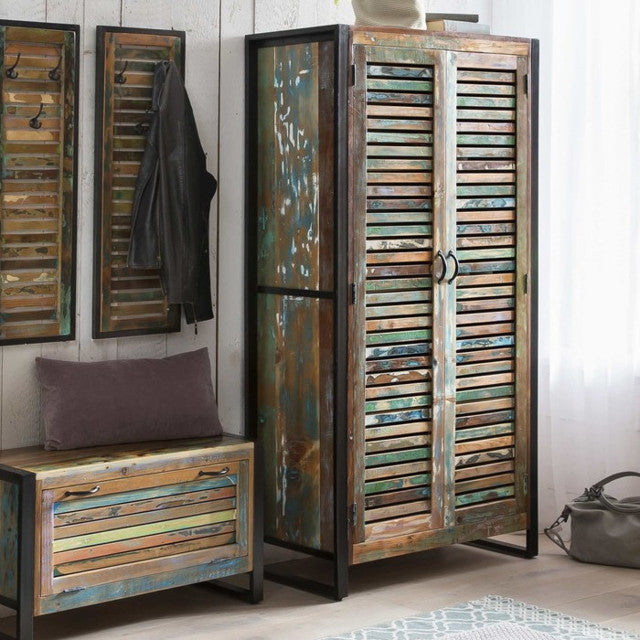 I mobili realizzati con legno riciclato trattato e recuperato creano ambienti con uno stile industrial allegro e colorato. L'Armadio Industrial Color River è realizzato in legno massello di recupero multicolor, unendo funzionalità e design. Con 2 ante, 3 mensole e maniglie in metallo, offre un'ottima organizzazione. Ogni articolo presenta sfumature di colore diverse, rendendolo unico. Realizzato artigianalmente, ha un peso di 70 kg, rendendolo robusto e stabile. Questo armadio è ideale per chi cerca armadi vintage scontati, portando un tocco di vivacità e originalità nella propria casa.