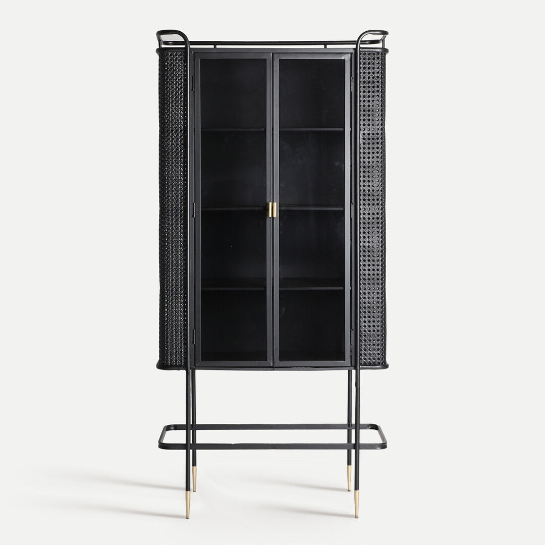 NOTE: Ferro nero oro, ante vetro, 3 mensole 10 kg, struttura robusta, prodotto artigianale.