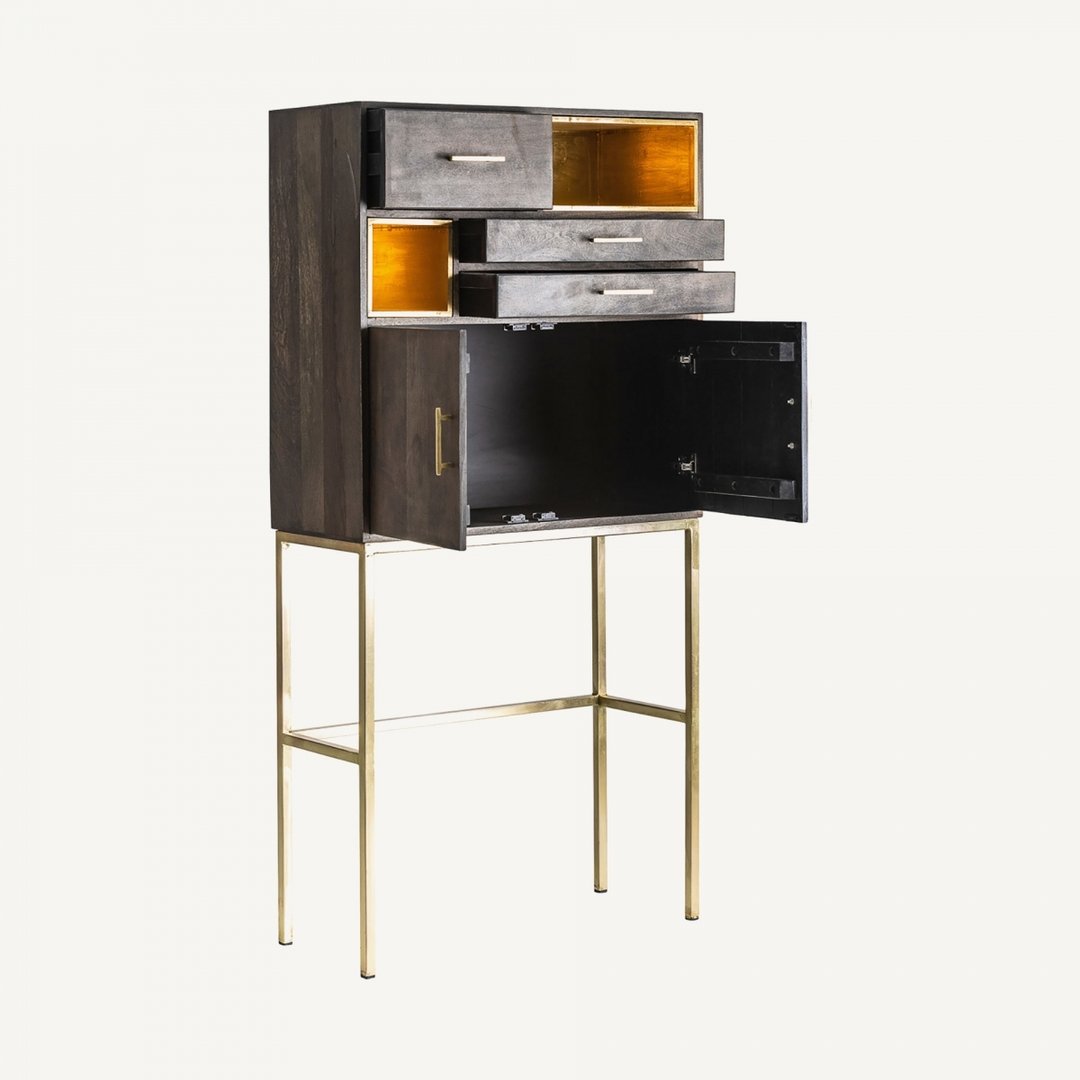 Lo stile messicano vintage è caratterizzato da colori vivaci e dettagli artigianali, ideale per chi ama un'atmosfera calda e accogliente. Il nostro armadio messicano vintage è realizzato in legno di mango con finitura grigio-oro, con dimensioni di 92 cm di larghezza, 40 cm di profondità e 184 cm di altezza. Con un peso di 60 kg, questo armadio è robusto e durevole. Offre spazio funzionale con cassetti di dimensioni interne 60x30x6 e 40x30x7, mentre il vano interno misura 85x33x44. Non ha ripiano interno, ma le gambe da 2,5x2,5x92 cm conferiscono stabilità. Ideale per chi cerca armadi etnici online, aggiunge un tocco di autenticità e stile alla tua casa!