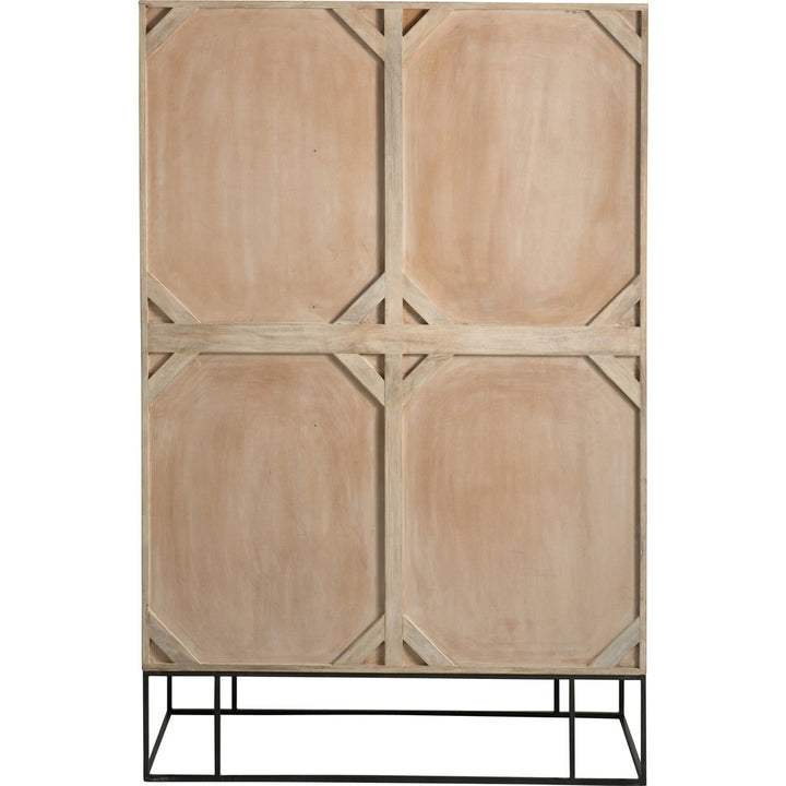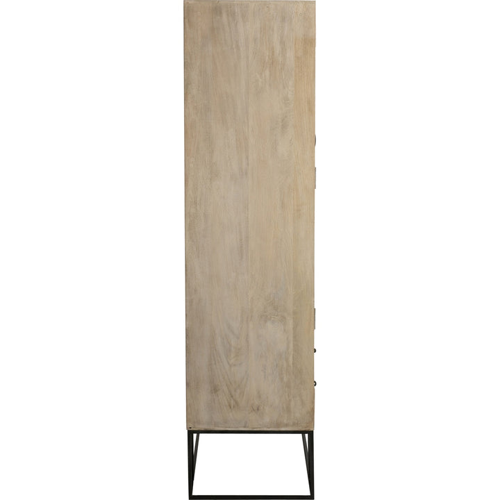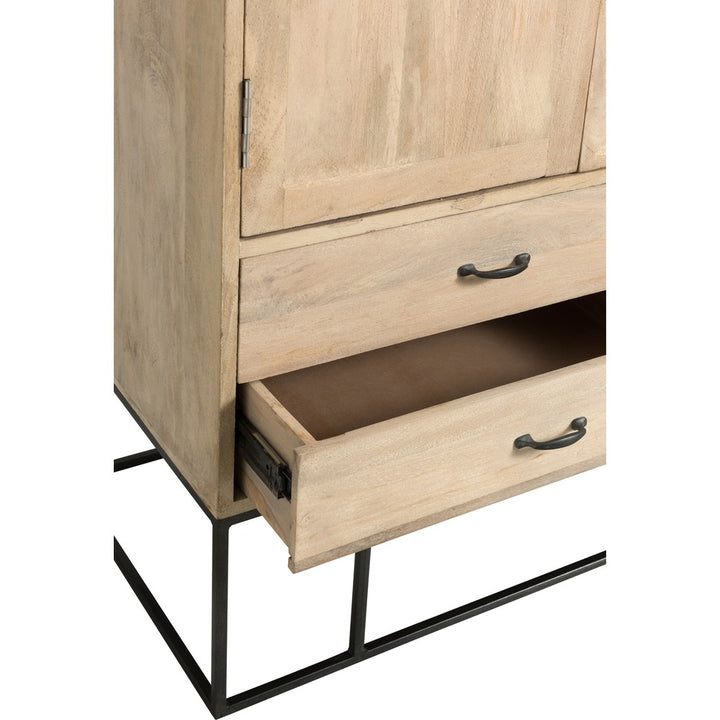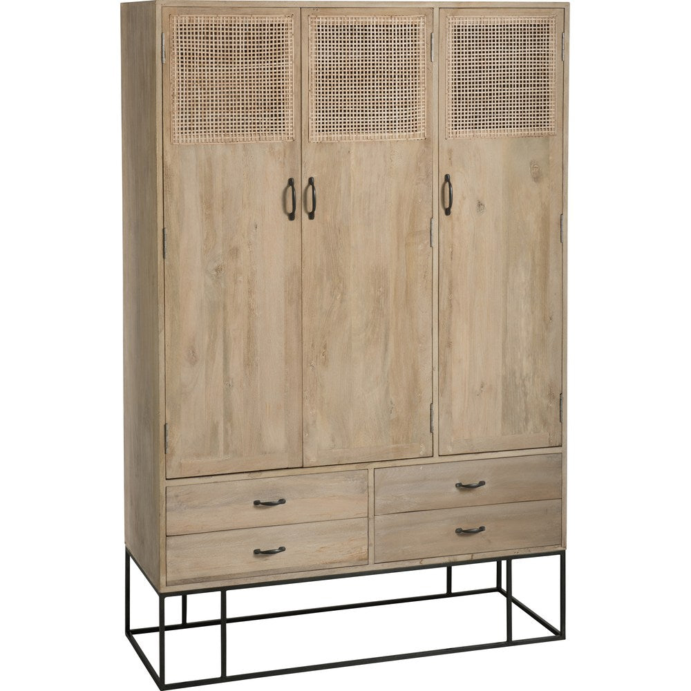NOTE: Mango massello, ferro, 3 ante, 2 mensole, bastone appendiabiti, 4 cassetti, maniglie ferro, prodotto artigianale.