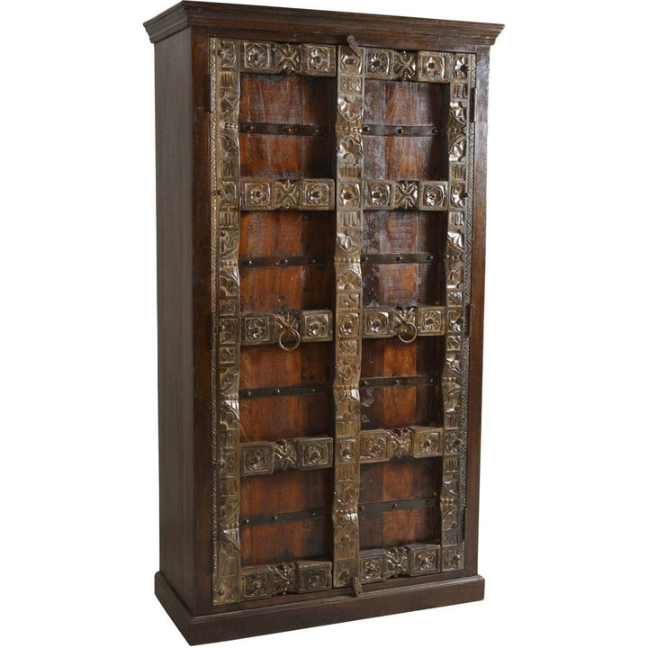 Armadio indiano etnico in legno riciclato e metallo artigianale