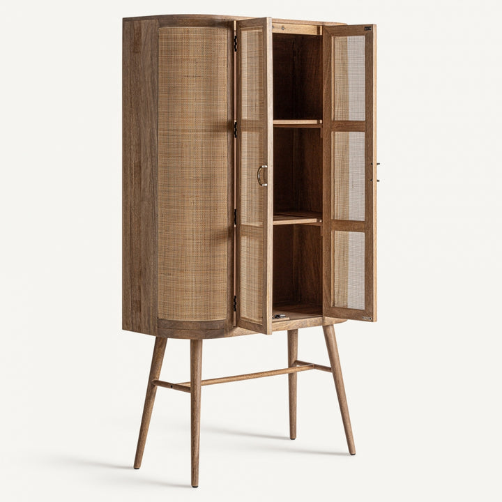 Lo stile contemporaneo vintage unisce design moderno e dettagli che evocano il passato. Questo armadio combina il legno massello di mango, noto per la sua resistenza e calda tonalità naturale, con il vimini intrecciato, creando un mobile funzionale e decorativo. Ideale per chi cerca arredi dal carattere unico, è perfetto in spazi contemporanei, ambienti boho-chic o interni rustici. Con dimensioni di cm 105 x 45 H 180 e un peso di 51,7 kg, dispone di due ante che nascondono uno spazio interno (102 x 40 x 125 cm) con due ripiani regolabili, ideali per riporre abbigliamento e oggetti decorativi. Ogni pezzo è realizzato artigianalmente, con imperfezioni che ne esaltano l’unicità. Perfetto per chi cerca armadi contemporanei, questo mobile coniuga eleganza e praticità, aggiungendo autenticità e raffinatezza a qualsiasi ambiente domestico.