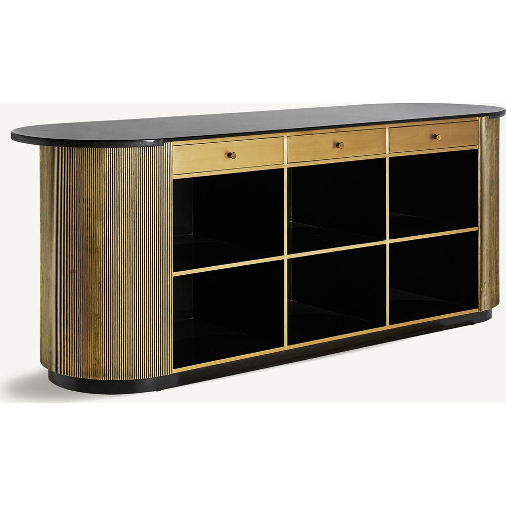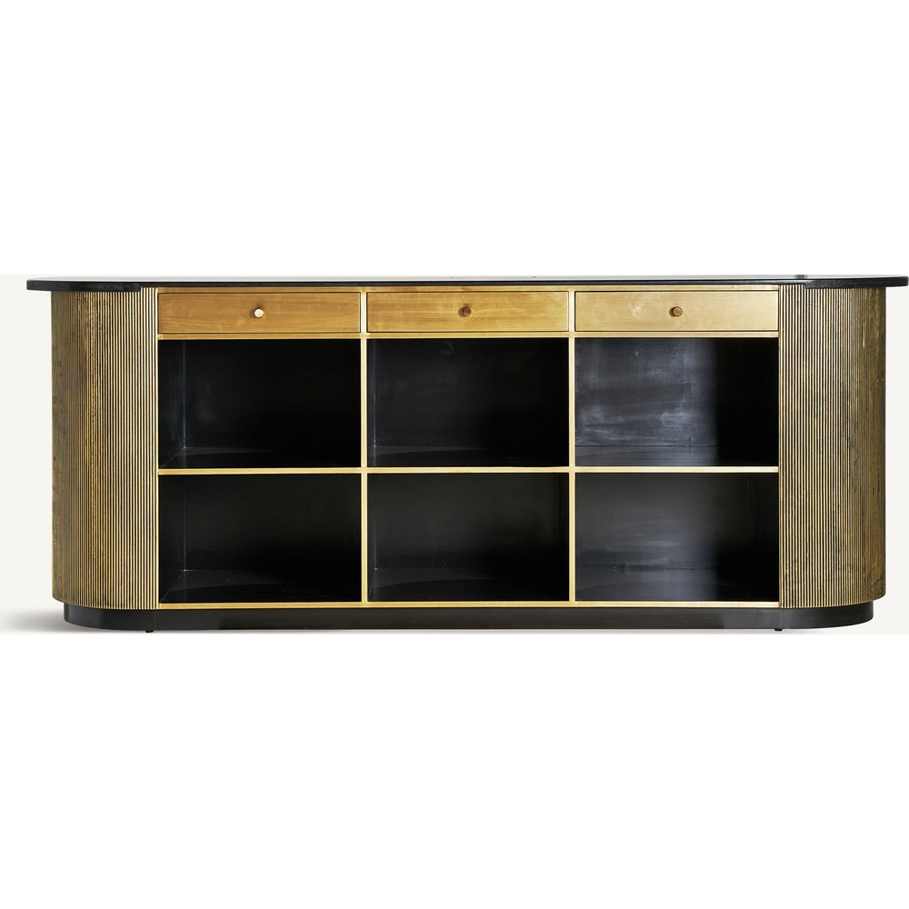 Bancone Bar Art Decò “Imperial” in MDF Dorato e Marmo Nero