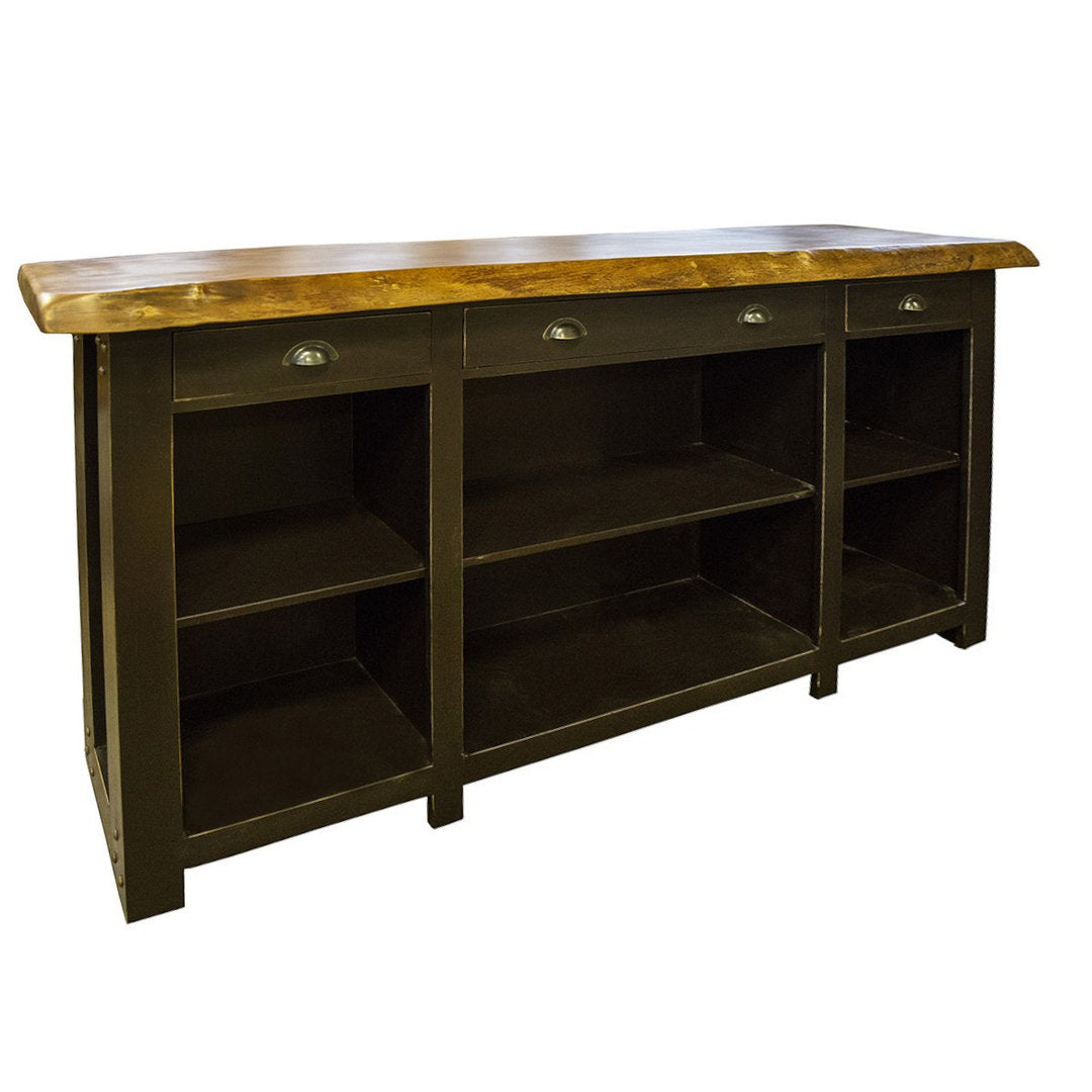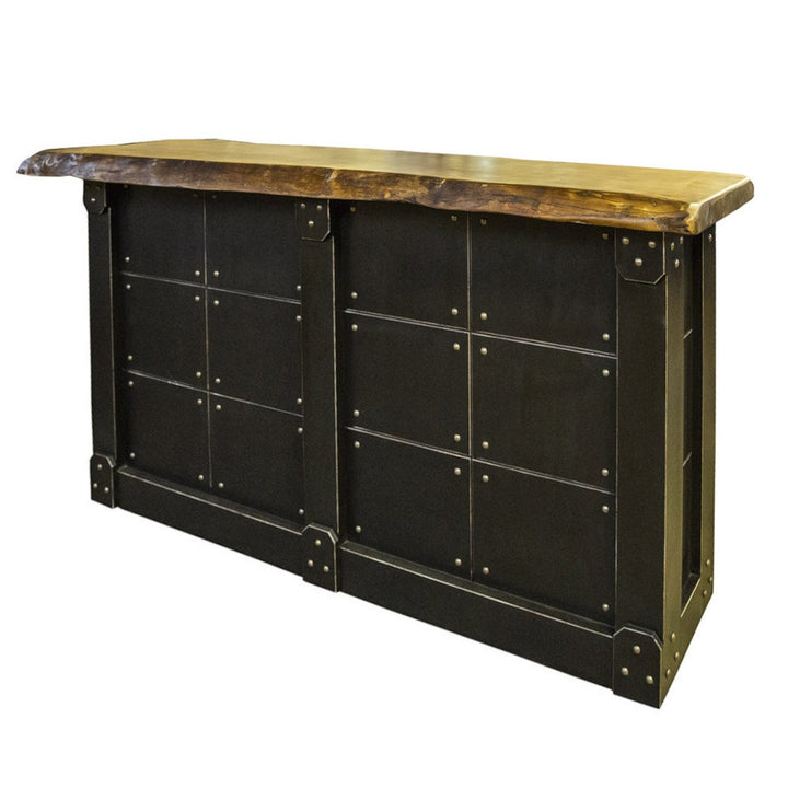 Aggiungi un tocco di fascino industriale e vintage al tuo spazio con il nostro Bancone Negozio Reception Albergo Bistrot. Realizzato con cura utilizzando un'elegante combinazione di chiodi in ferro e legno di mango proveniente dall'India, questo banco cassa è un capolavoro artigianale che cattura l'attenzione e aggiunge carattere a qualsiasi ambiente.