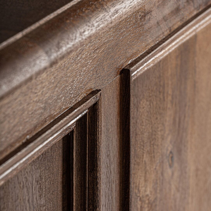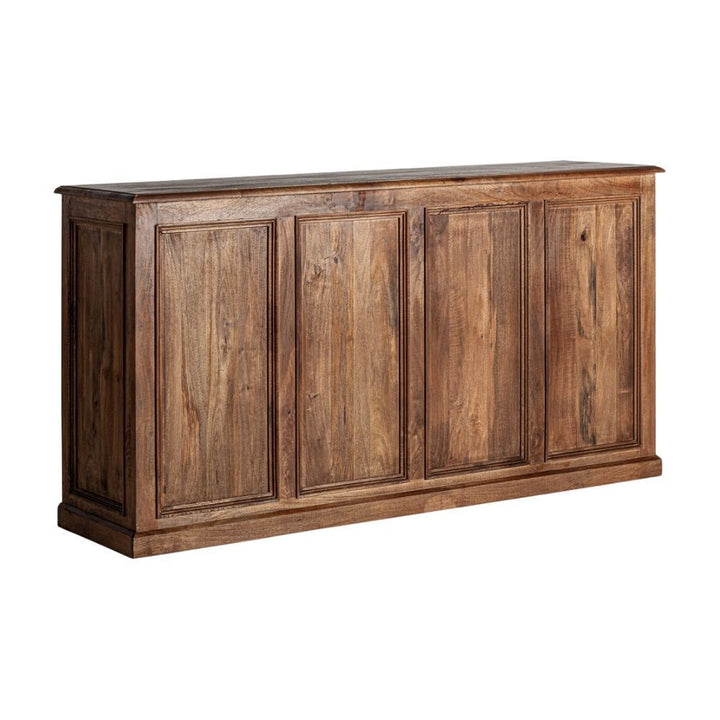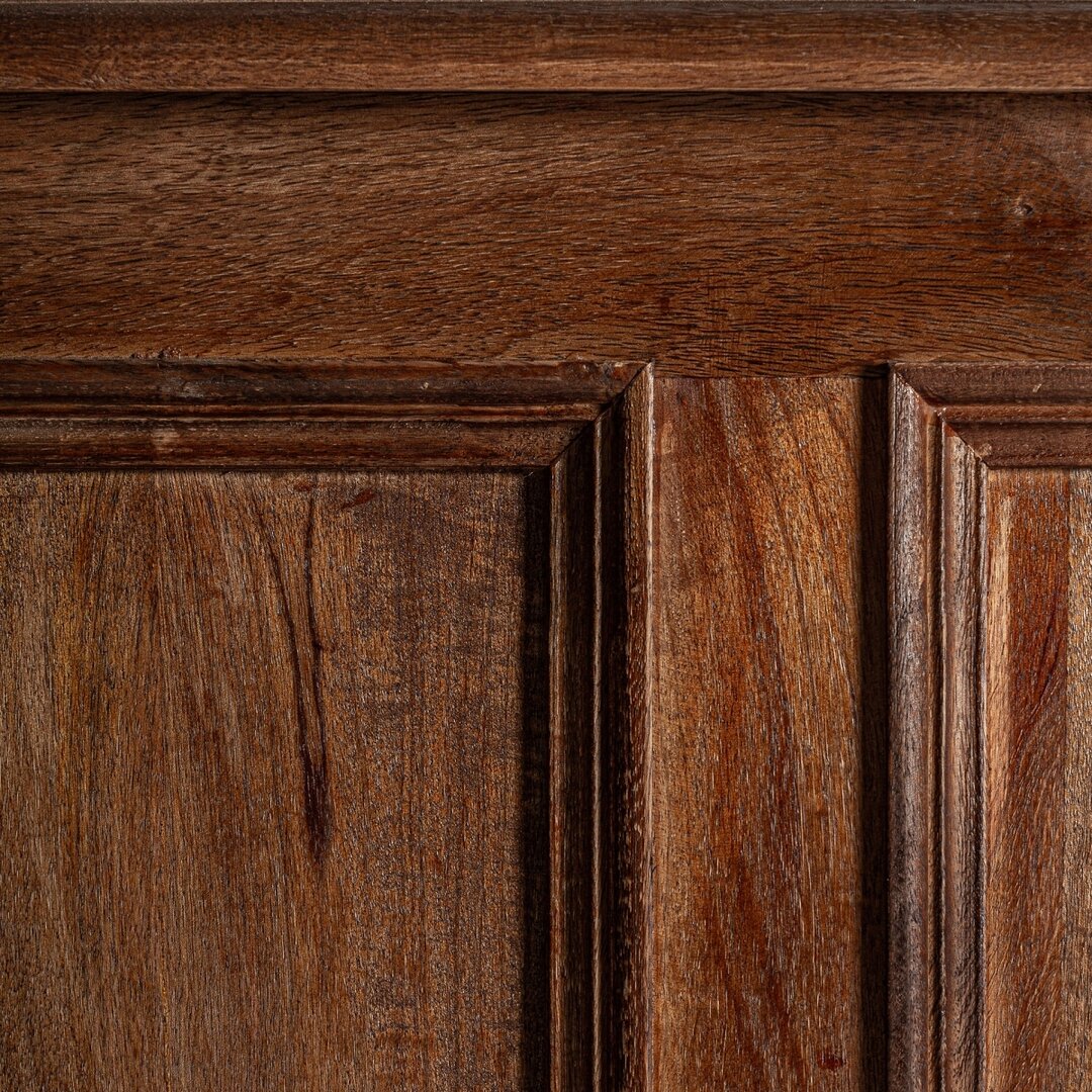 Realizzato in legno di teak riciclato, questo bancone unisce resistenza e sostenibilità. La tonalità marrone esalta le venature e le imperfezioni naturali del legno, rendendo ogni pezzo unico. La struttura solida include ampie mensole per riporre bottiglie e bicchieri, oltre a due cassetti con maniglie in metallo per un comodo spazio contenitivo. Lavorato artigianalmente, presenta variazioni di colore, nodi e segni del tempo che ne accrescono il carattere autentico. Ideale per arredamenti rustici e coloniali, è dotato di un sistema di sospensione a parete per una maggiore stabilità. Facile da manutenere, basta un panno umido per la pulizia. Spedizione sicura con imballaggio rinforzato. Peso: 103,5 kg.