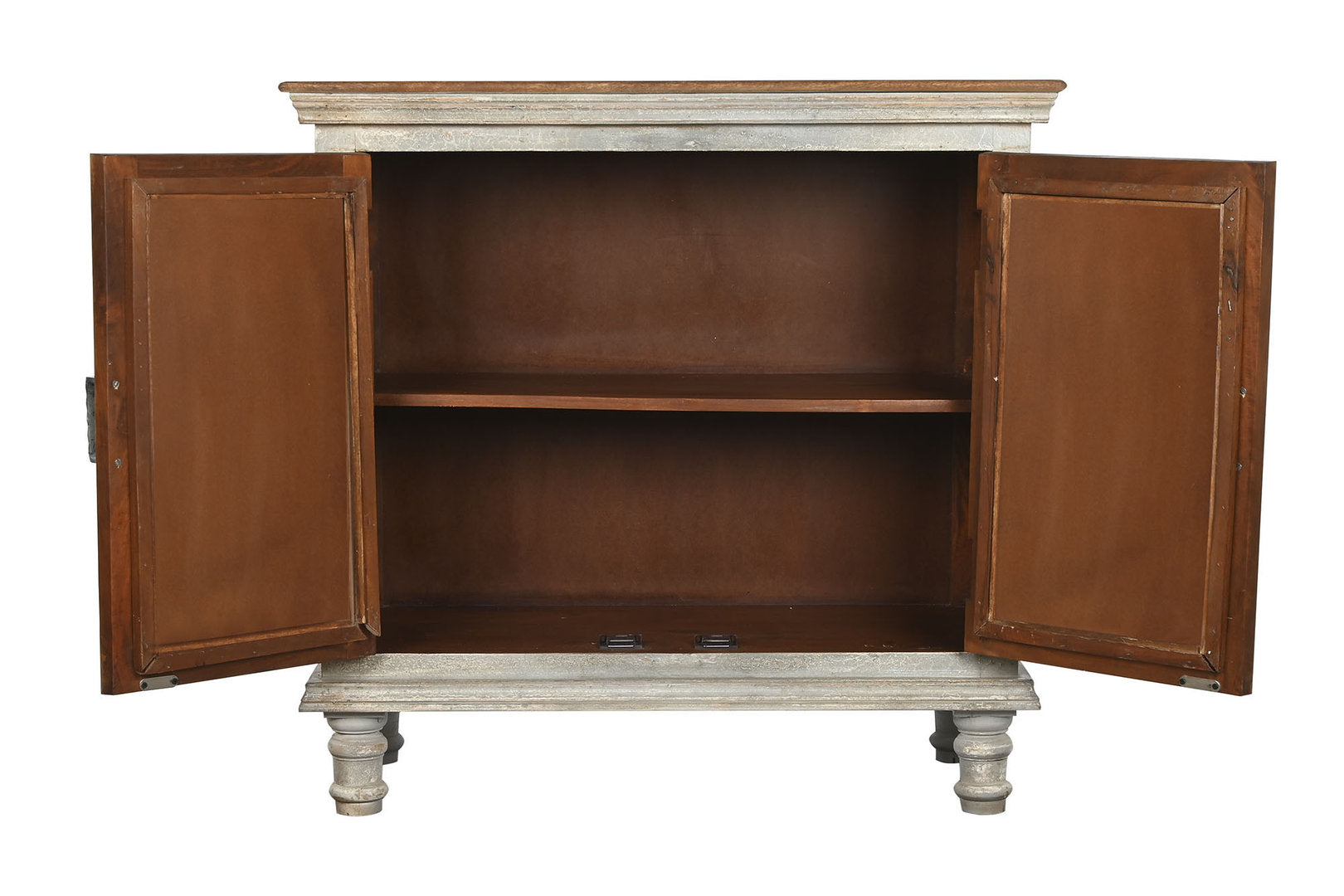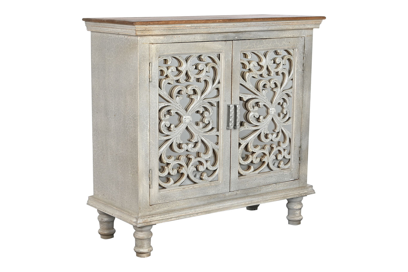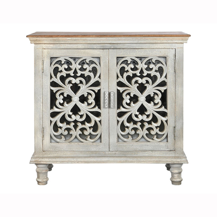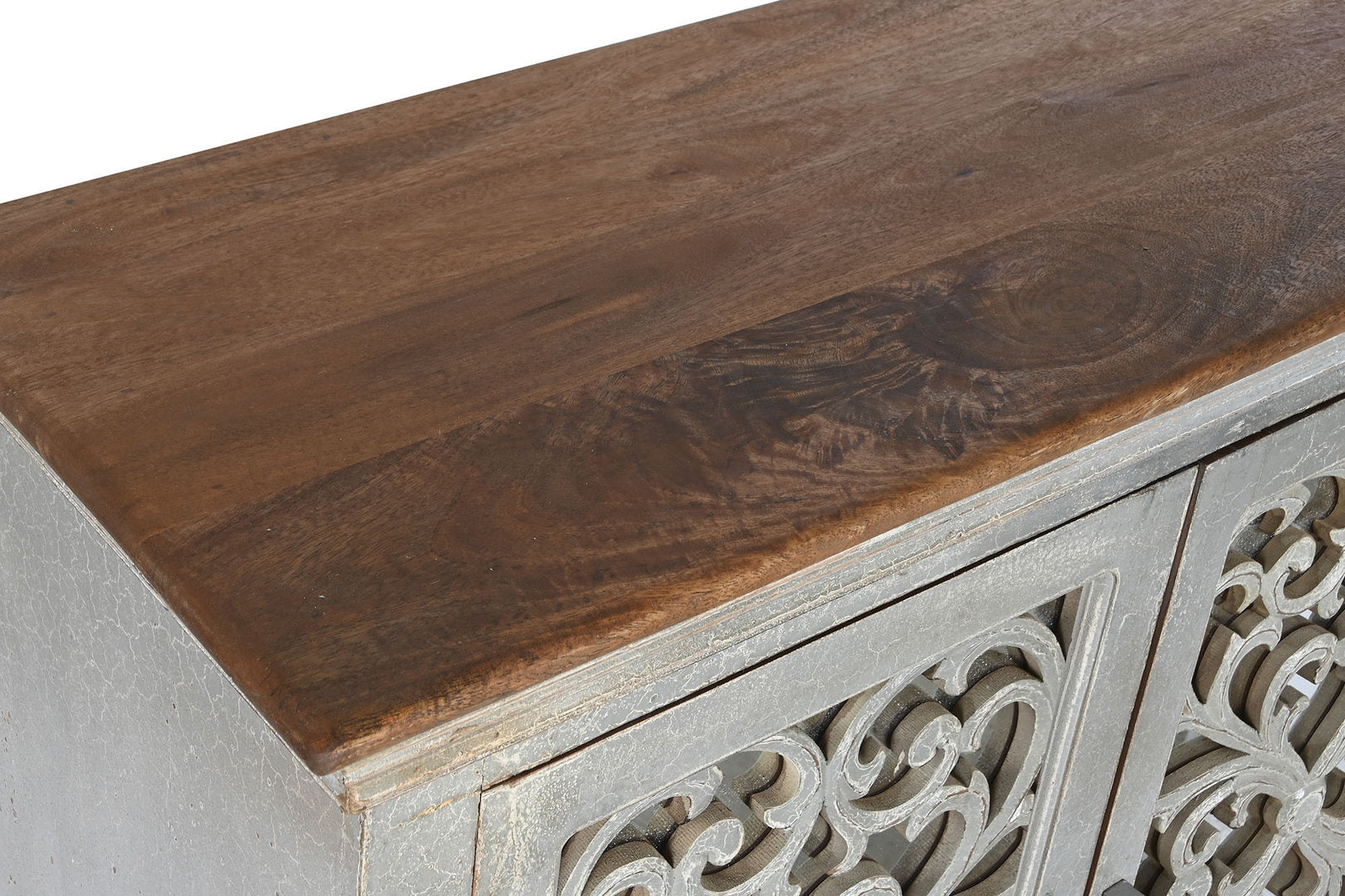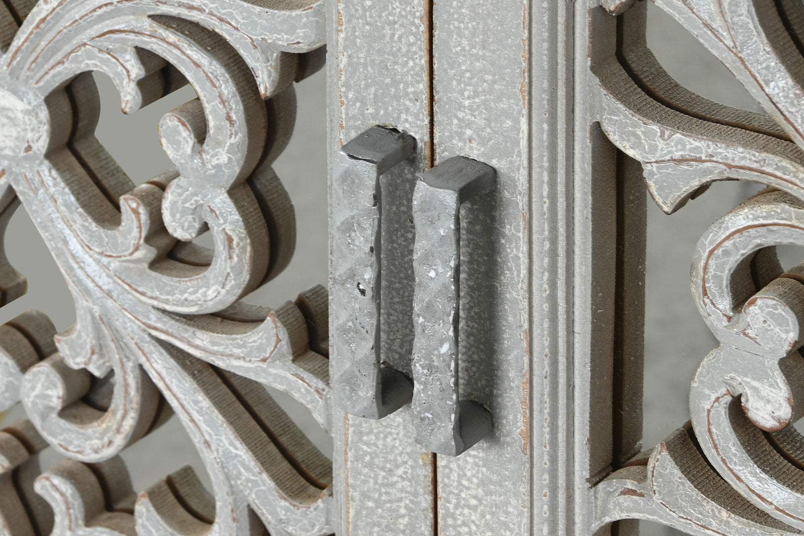 Il nostro Buffet Shabby Chic con Specchio combina l'eleganza rustica dello shabby chic con la funzionalità moderna. Realizzato in legno massello di mango, noto per la sua robustezza e la grana fine, e arricchito da dettagli in specchio, questo buffet riflette una luce calda che invita al comfort domestico. Dimensionato a 100 cm di larghezza, 45 cm di profondità e 98 cm di altezza, con un peso di 38 kg, offre uno spazio contenitivo ottimale senza sacrificare lo stile. Dietro le due porte, ognuna con una larghezza di 41 cm, una profondità di 7 cm e un'altezza di 66 cm, si nasconde un ripiano pratico, distanziato 32 cm dall'altro, perfetto per mantenere in ordine stoviglie o biancheria. Ideale per aggiungere un tocco di eleganza autentica, il nostro buffet è una scelta prestigiosa tra i mobili shabby chic online, pensato per chi desidera unire il fascino d'altri tempi con la praticità di oggi.
