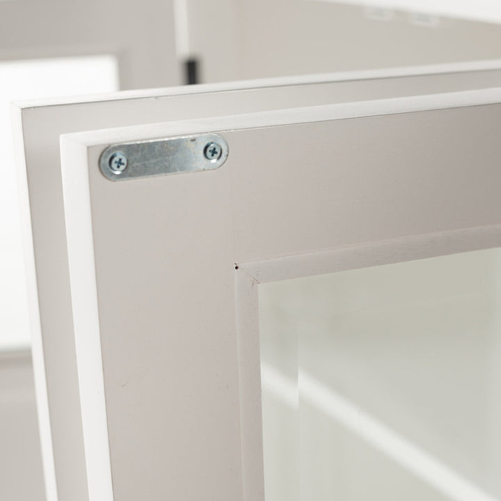 Sei ampie ante, ciascuna con dettagli in vetro e legno, per un look sofisticato.