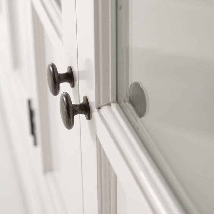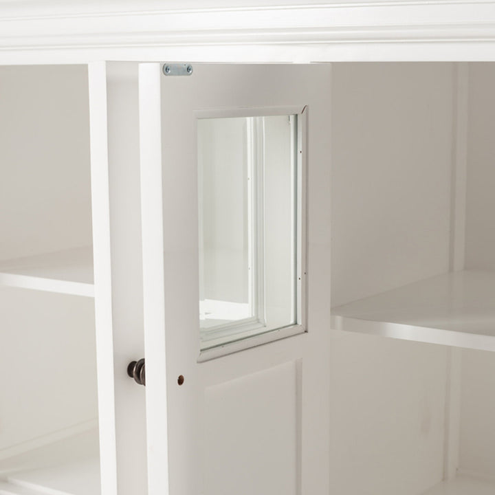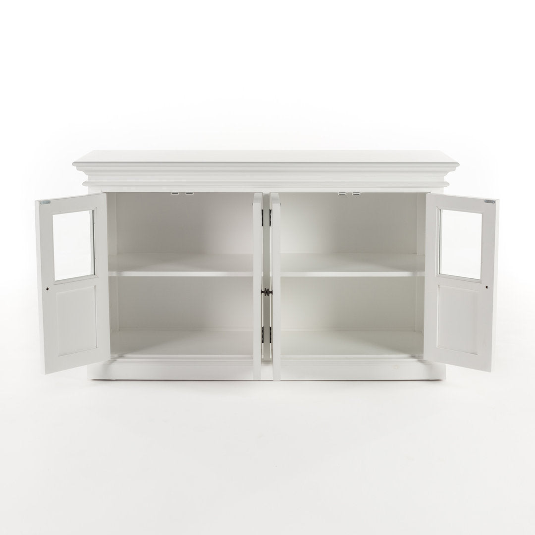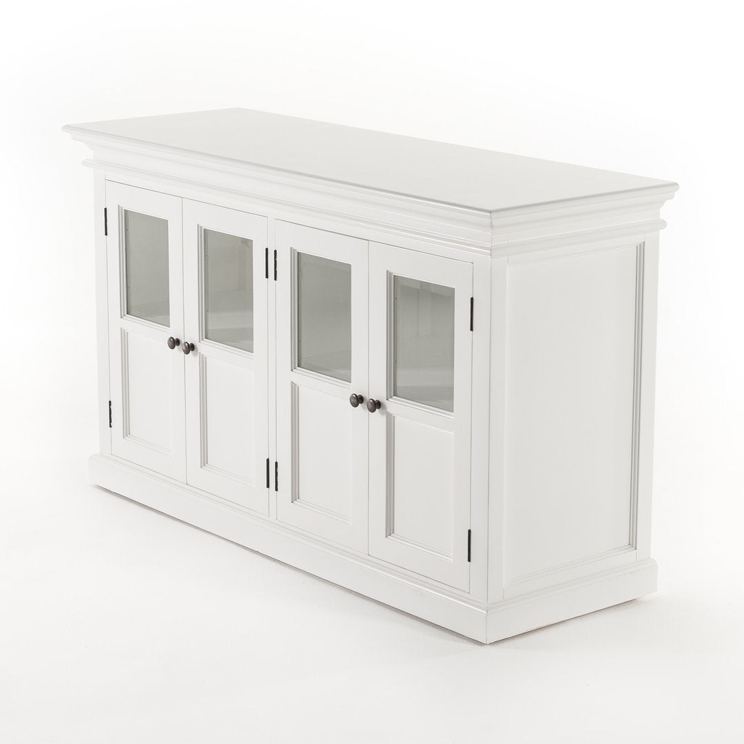 Questo raffinato e spazioso buffet provenzale chic rappresenta l'essenza del design classico e dell'eleganza senza tempo. Con ben 4 ante, ciascuna sapientemente realizzata con una combinazione di vetro e legno, questo mobile diventa il fulcro di qualsiasi ambiente in cui viene inserito, offrendo al contempo una capacità di stoccaggio ineguagliabile.