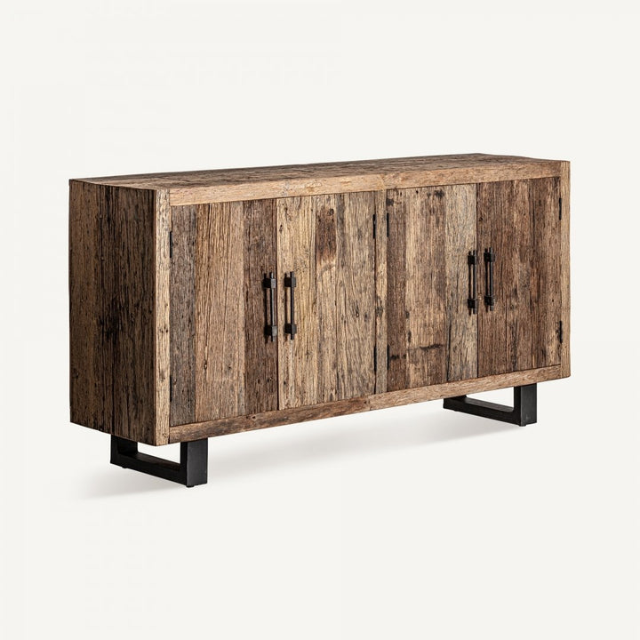 Uno stile che fonde influenze industrial e country, creando un equilibrio perfetto tra rustico e moderno. Il buffet in legno di pino è perfetto per aggiungere un tocco di stile industrial-country al tuo arredamento. Con misure di 180 x 45 x 90 cm e un peso di 99,6 kg, questo mobile offre una soluzione ottimale per spazi che richiedono un design compatto ma spazioso. Realizzato con legno recuperato e dettagli in ferro, il buffet combina durabilità e estetica, garantendo resistenza e uno stile senza tempo. Dotato di quattro porte e due ripiani fissi che supportano fino a 15 kg ciascuno, questo pezzo è ideale per organizzare la casa conservando oggetti di valore o esponendo elementi decorativi. Le gambe robuste con tacchi regolabili assicurano stabilità e un aggiustamento perfetto in ogni ambiente, rendendo questo buffet rustico un'aggiunta indispensabile per chi cerca mobili funzionali e di design.