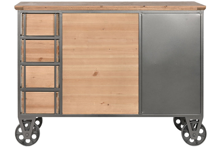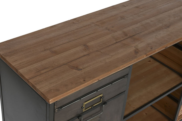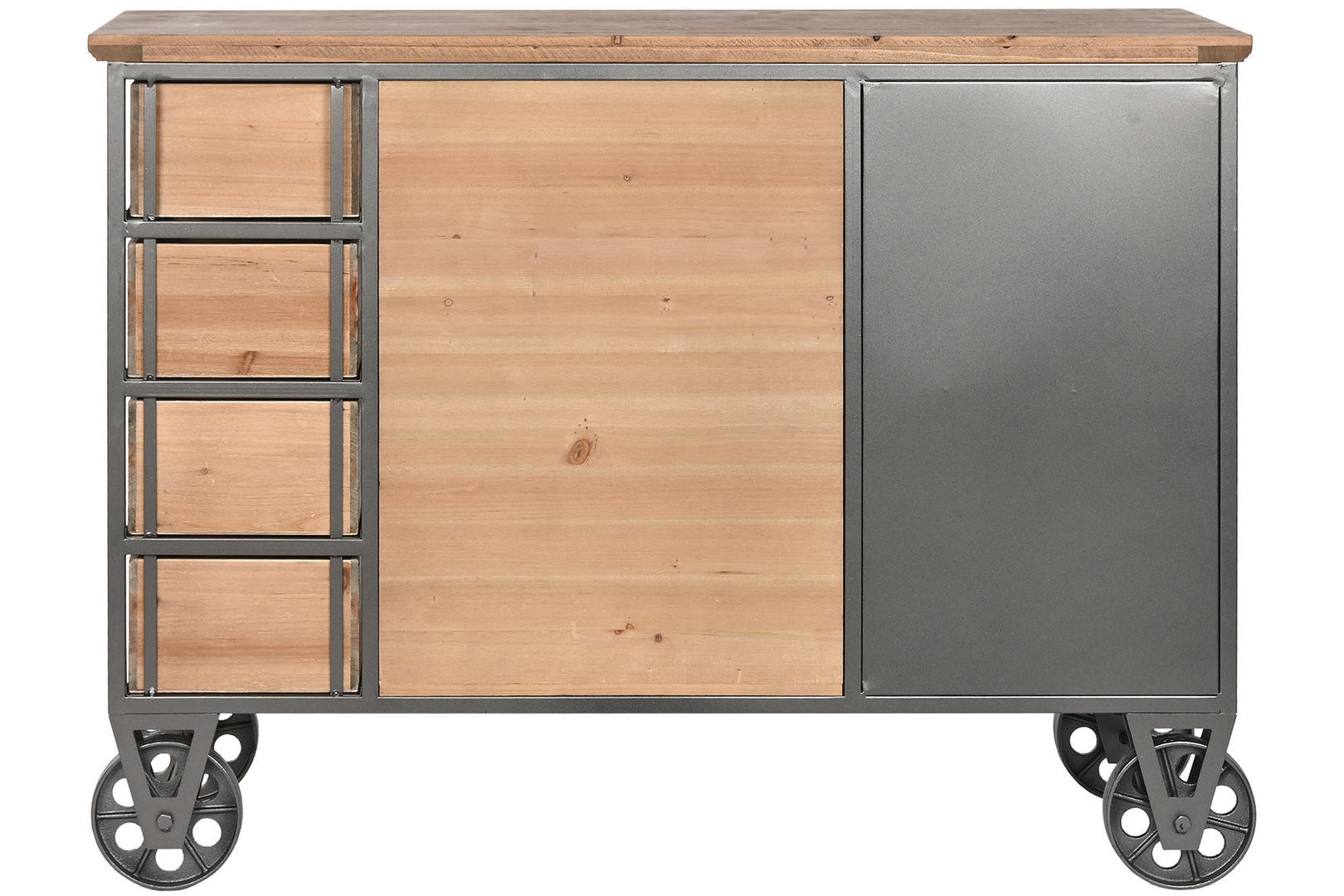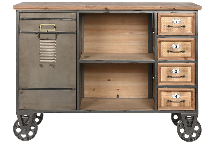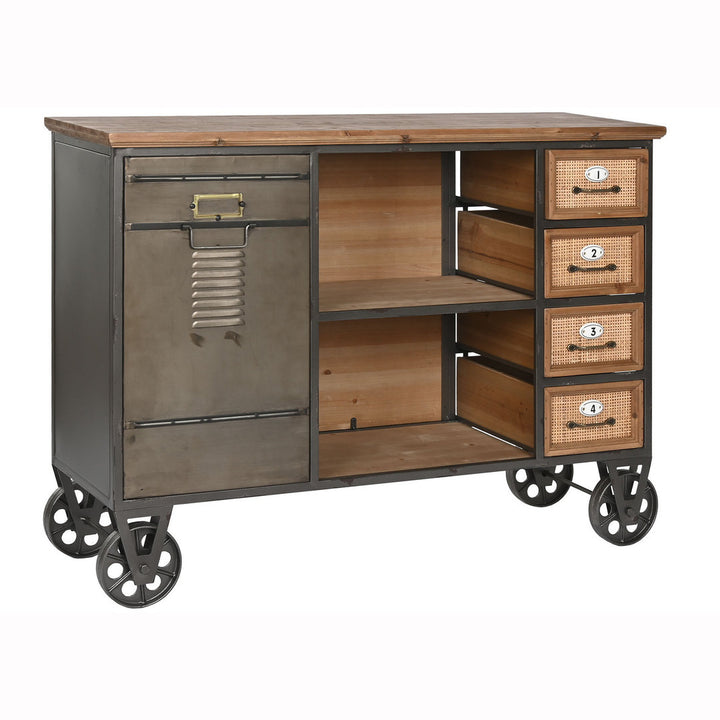 Lasciati sedurre dalla nostra Cassettiera Consolle Industrial, una sintesi perfetta tra robustezza e stile che caratterizza il look vintage moderno. Realizzata con pregiato legno di abete e completata da elementi in metallo, questa cassettiera consolle è la scelta ideale per chi ricerca un pezzo unico nel suo genere. Le dimensioni di 104 cm x 34 cm x H 76,5 cm offrono ampie superfici di lavoro e molteplici soluzioni di organizzazione grazie ai suoi quattro cajones e una porta, perfetta per nascondere ciò che desideri mantenere fuori dalla vista. Ogni cassetto, di 19 cm di larghezza, 29 cm di profondità e 12 cm di altezza, insieme alla porta di 32 cm di larghezza, 1,5 cm di fondo e 55 cm di altezza, rende questo mobile estremamente versatile. Con due estantes e una distancia entre estantes di 26 cm, offre spazio sufficiente per ogni esigenza. Scopri le nostre credenze vintage scontate e aggiungi un pezzo da collezione al tuo arredo.