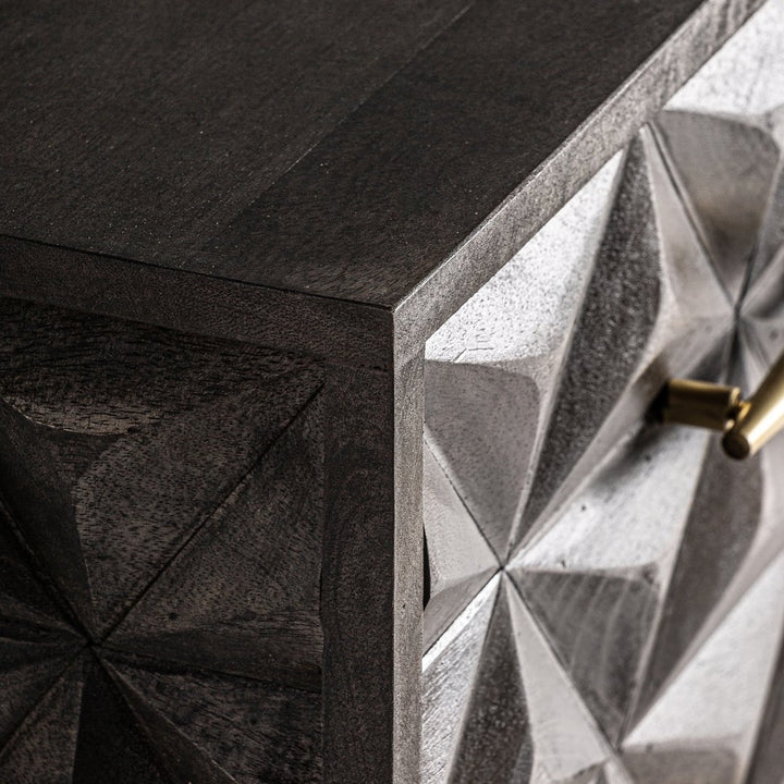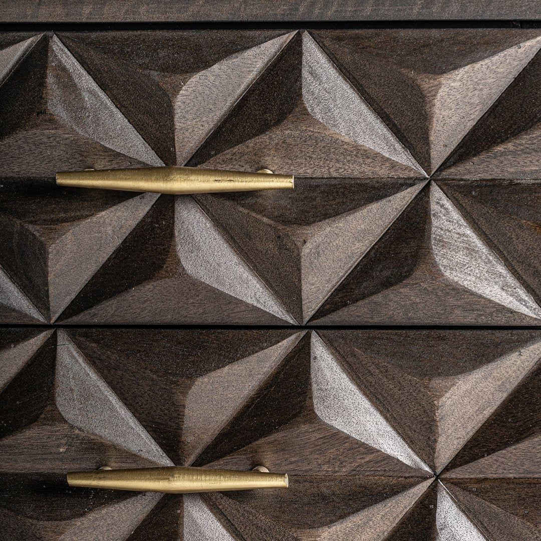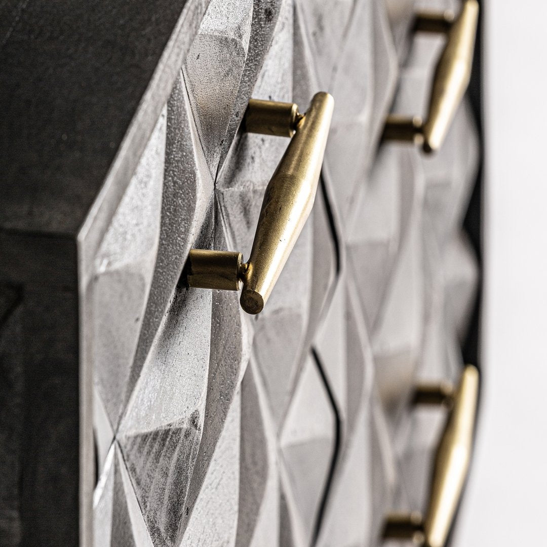 Perfetto per chi cerca un mobile che non sia solo funzionale, ma anche un riflesso di buon gusto e raffinatezza. Dimensioni interne dei cassetti: 41x36x14 cm. L'uso del legno di mango combinato con dettagli in ottone dorato aggiunge un tocco di lusso e raffinatezza, tipici dell'Art Déco.