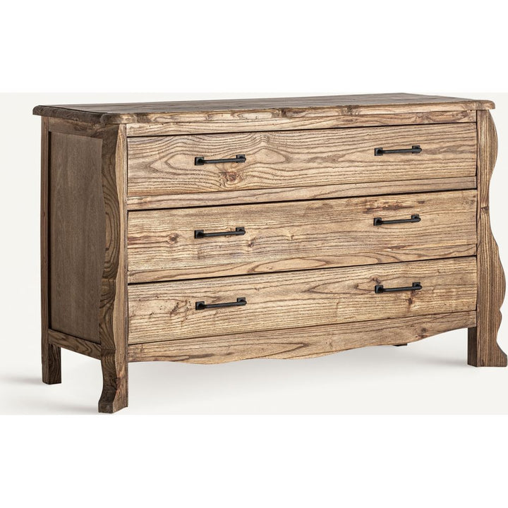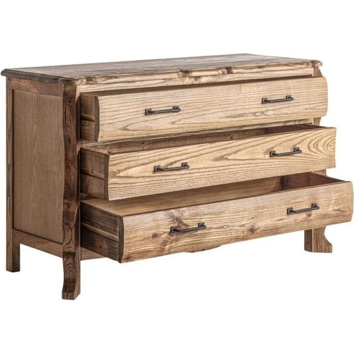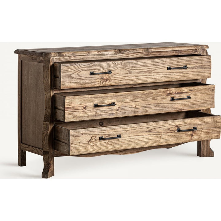Lo stile rustico moderno è lusso naturale e calore artigianale. La Cassettiera in Olmo è realizzata in olmo naturale, con finitura unica. Con peso di 39,8 kg, presenta 3 cassetti 114x34,5x14 cm, guide legno e supporto 60 kg. Ogni venatura è prestigio. Perfetta per soggiorni di lusso e camere, aggiunge ordine design. Proposto con sconti fino al 70% su Ethnic Chic.