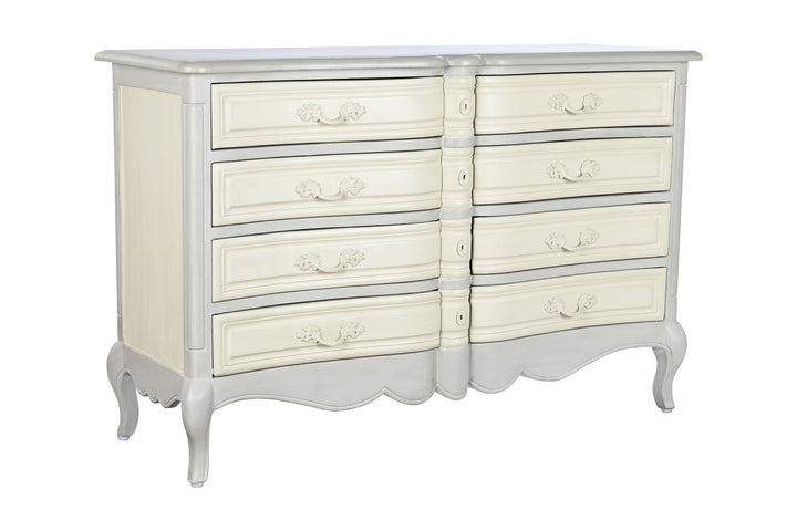 Il charme del Provenzale si manifesta in questa Cassettiera Provenzale Bianco Crema, un'elegante fusione di funzionalità e stile rustico francese. Realizzata in legno massello, questa cassettiera è la sintesi perfetta tra robustezza e delicatezza estetica, offrendo una soluzione d'arredo sofisticata e pratica. Con le sue dimensioni di 140 cm x 50 cm x H 90 cm e dotata di otto cassetti, fornisce ampio spazio per ogni necessità di stoccaggio, rendendola ideale per l'organizzazione di vestiti e accessori. La finitura in bianco crema esalta le forme sinuose e le linee morbide tipiche dello stile shabby chic, adattandosi a qualsiasi ambiente domestico in cerca di una nota di eleganza rurale. Scopri la selezione di cassettiere shabby online per trovare il complemento d'arredo che unisce l'essenza dell'artigianato tradizionale all'eleganza contemporanea. Questa cassettiera non è solo un mobile, ma un pezzo di design che porta con sé la bellezza e l'atmosfera delle province francesi direttamente nel tuo spazio abitativo.