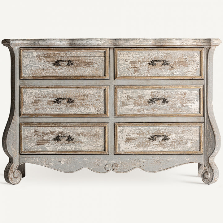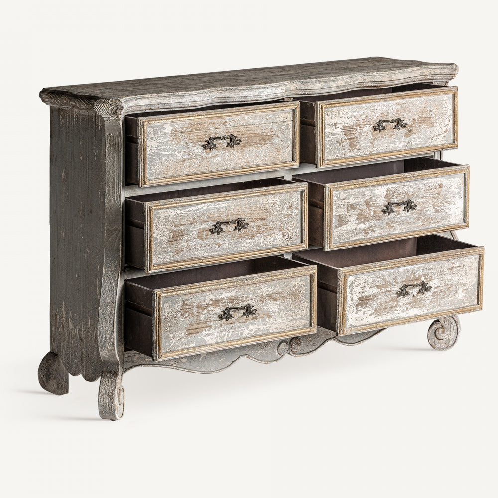 Questo mobile è ideale per soggiorni, camere da letto o qualsiasi altro ambiente in cui si desidera combinare stile e praticità. I suoi 6 cassetti offrono ampio spazio di stoccaggio, rendendolo perfetto anche per piccoli ambienti.