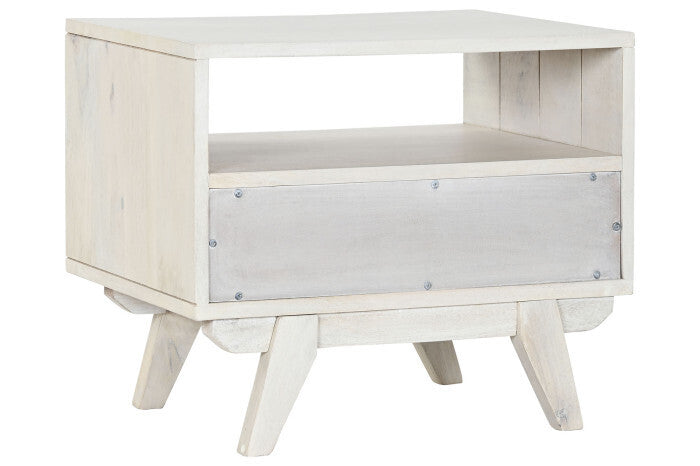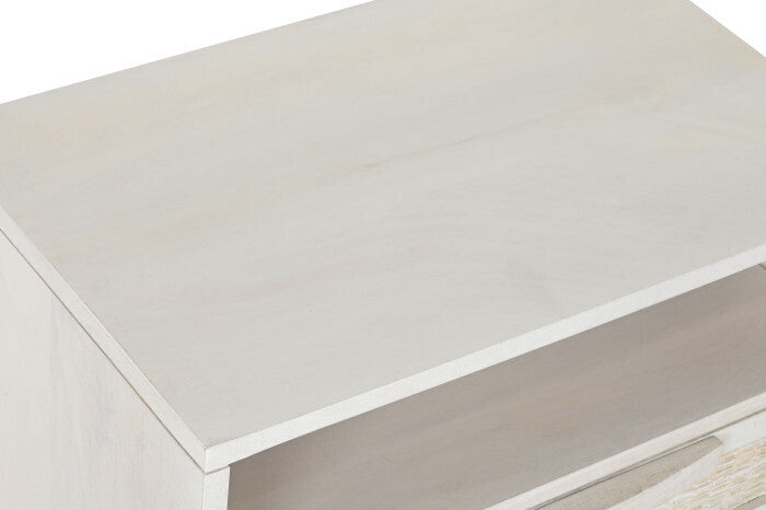 Comodino Coloniale Bianco in Legno di Mango e Rattan