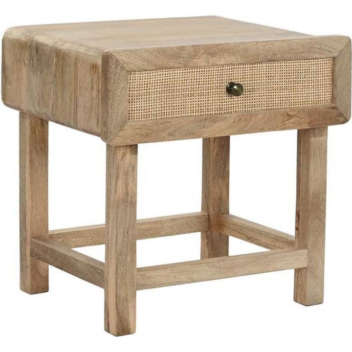 Comodino in Legno Massello di Mango e Rattan