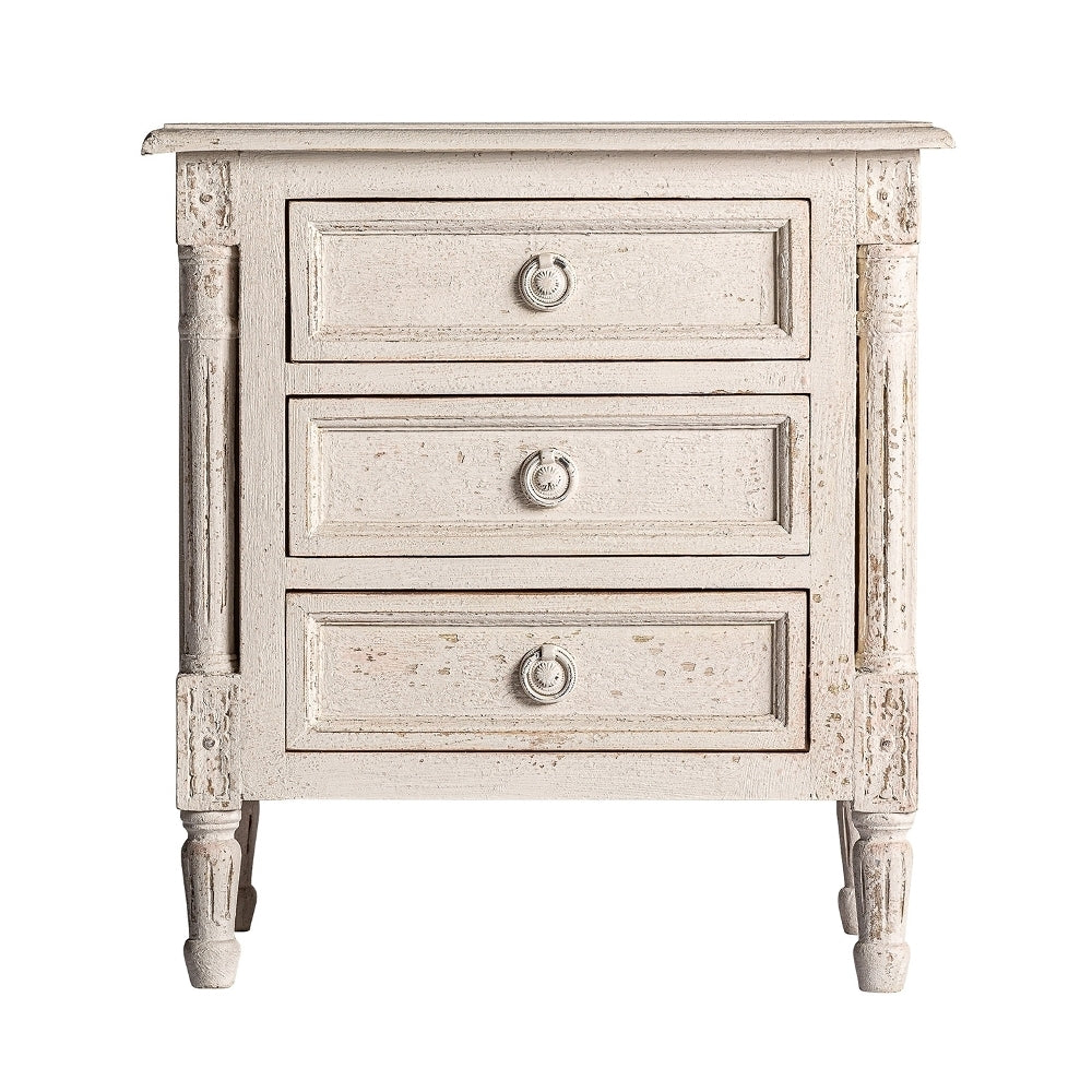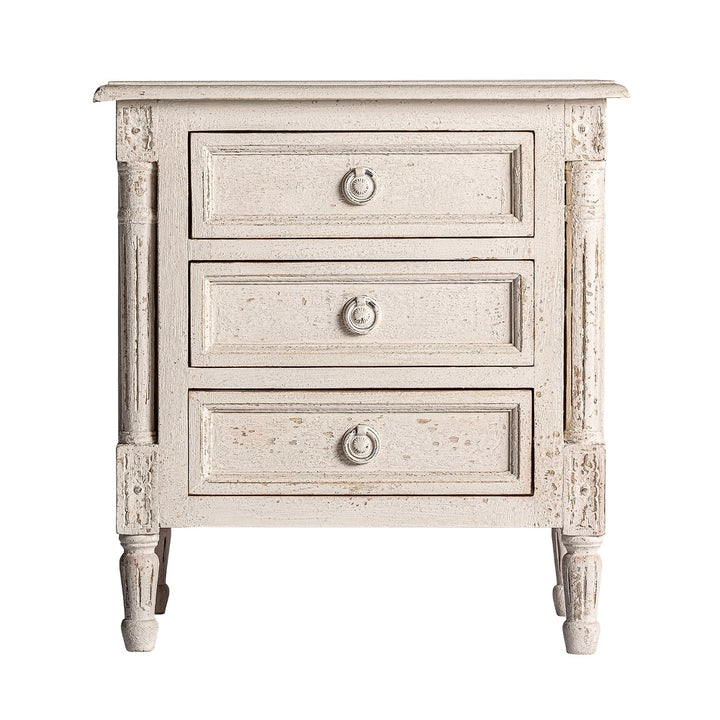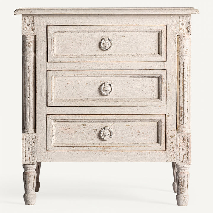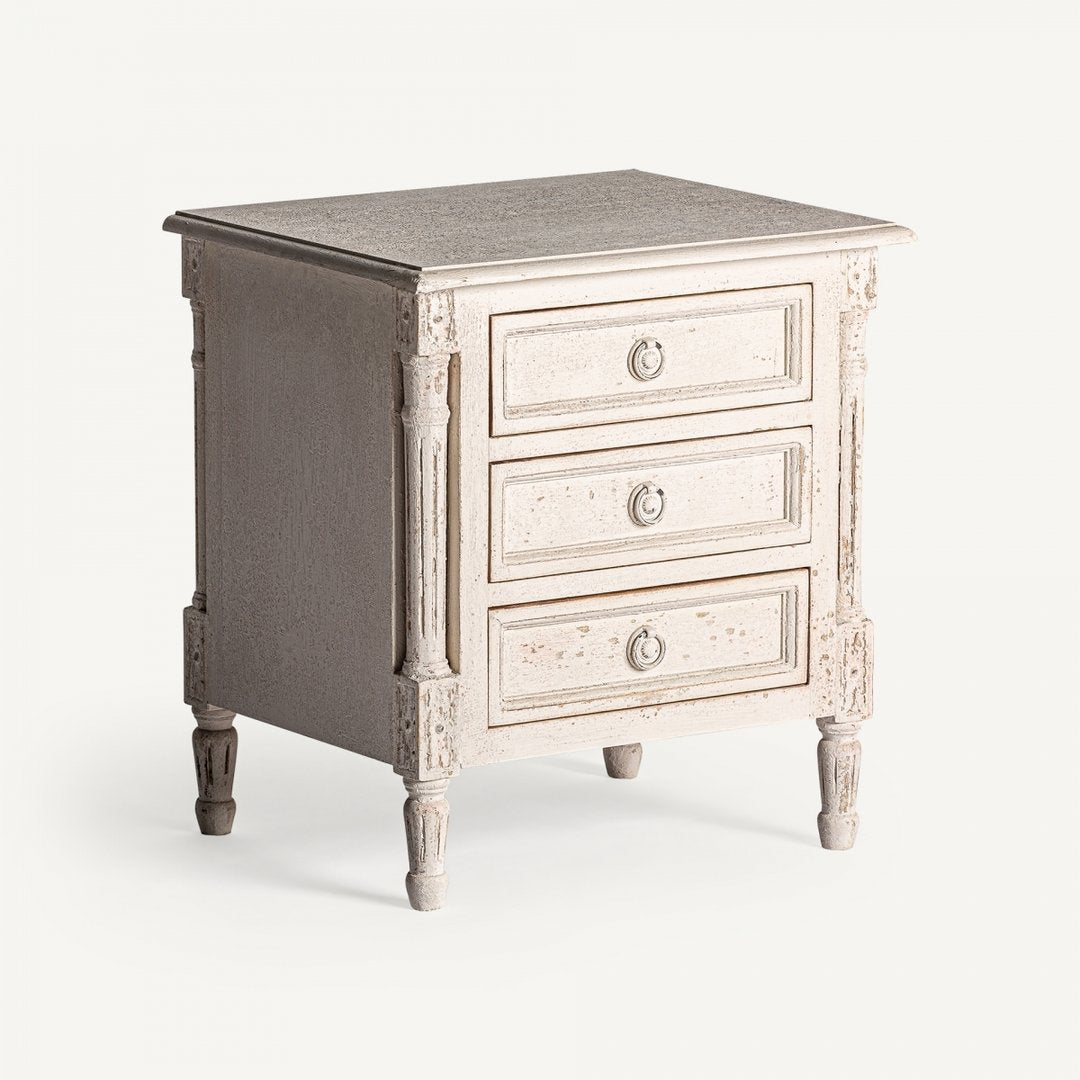 Comodino Provenzale Bianco Antico in Legno Massello di Mango