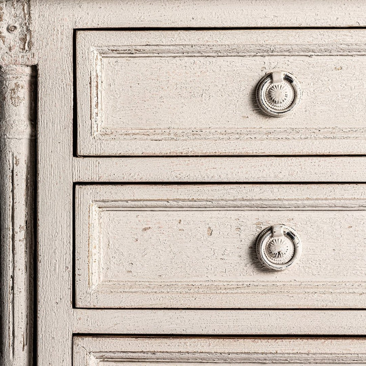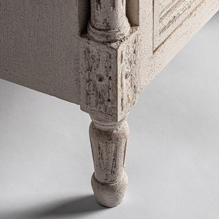Lo stile provenzale è enfatizzato dalla finitura bianca antica e dai dettagli romantici di questo comodino. I piedini caratteristici e le linee morbide lo rendono un pezzo unico e affascinante, perfetto per creare un'atmosfera accogliente nella tua camera da letto.