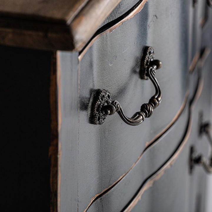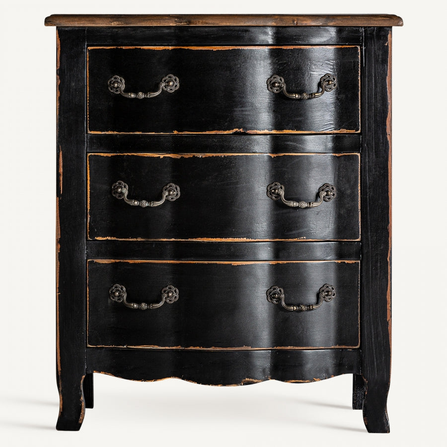 Un complemento d’arredo dallo stile provenzale ed elegante, perfetto per aggiungere un tocco di raffinatezza a camere da letto e zone living dal gusto classico e ricercato. Realizzato artigianalmente in legno massello di olmo, presenta una finitura nera che dona carattere e profondità all’ambiente. Le sue linee classiche si combinano con dettagli scolpiti che esaltano il fascino vintage del mobile. Dotato di ampi cassetti, offre spazio contenitivo per mantenere in ordine gli oggetti essenziali della zona notte. Ogni pezzo è unico, con leggere variazioni di tonalità e texture che ne valorizzano l’autenticità artigianale. Perfetto per ambienti in stile provenzale, shabby chic o classico, si abbina splendidamente con mobili coordinati, come il comò cassettiera VCH29457. Un complemento sofisticato e senza tempo, pensato per chi ama l’eleganza discreta e il pregio dei materiali naturali.