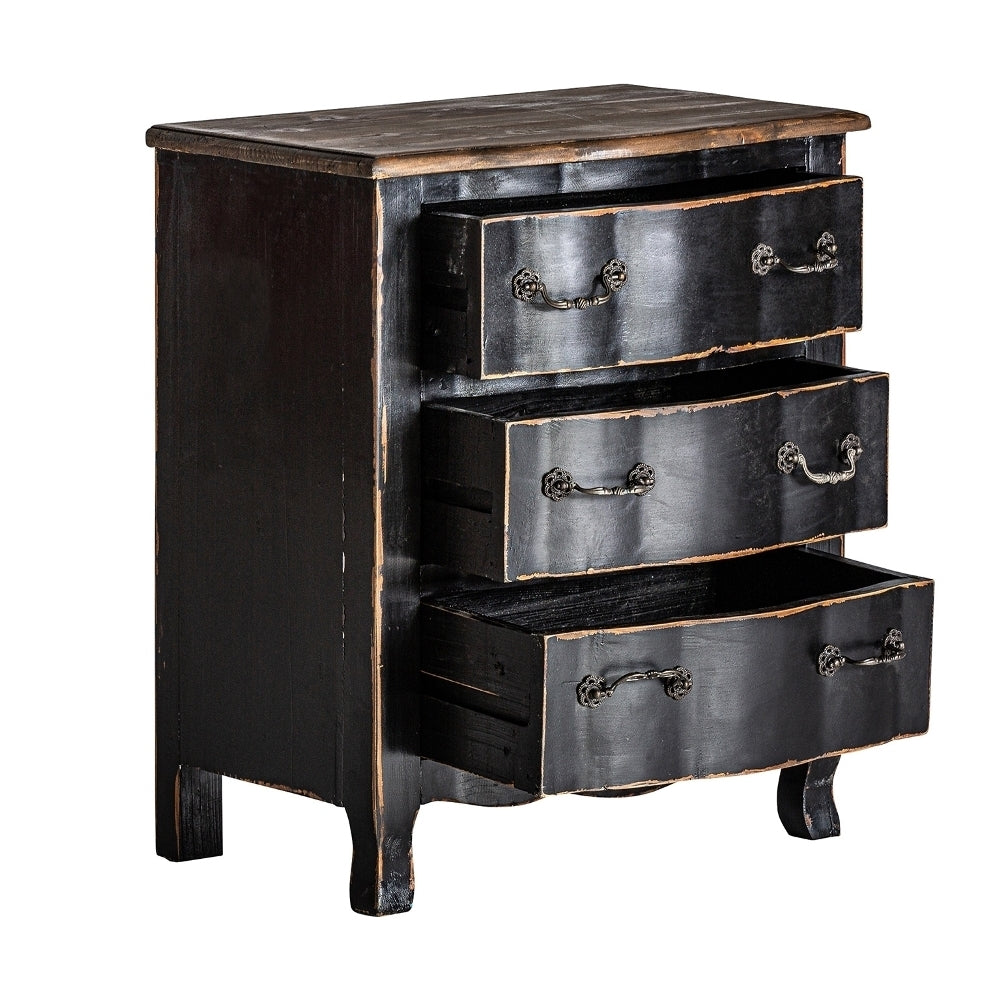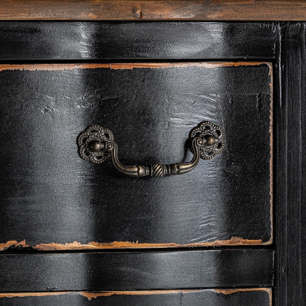 Comodino Provenzale Nero in Legno Massello di Olmo