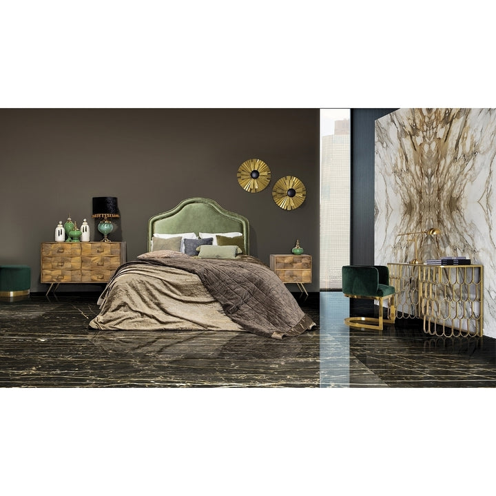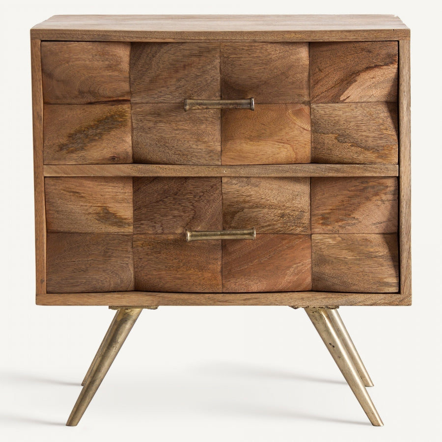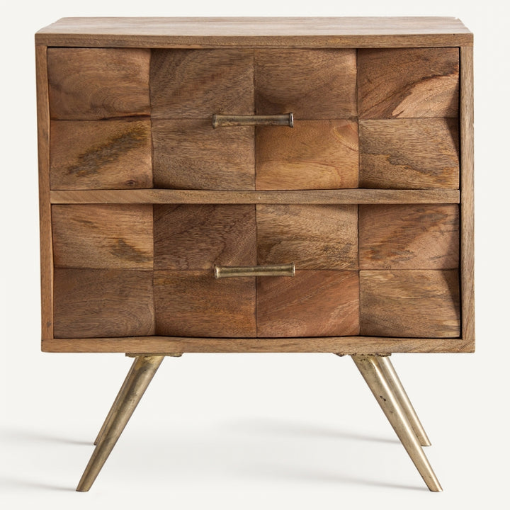 La combinazione di legno massello di olmo e ferro conferisce a questo comodino un aspetto distintivo e unico. Il colore naturale e gli accenti dorati aggiungono un tocco di lusso senza tempo, mentre lo stile vintage contemporaneo si adatta perfettamente a diverse estetiche d'arredo.