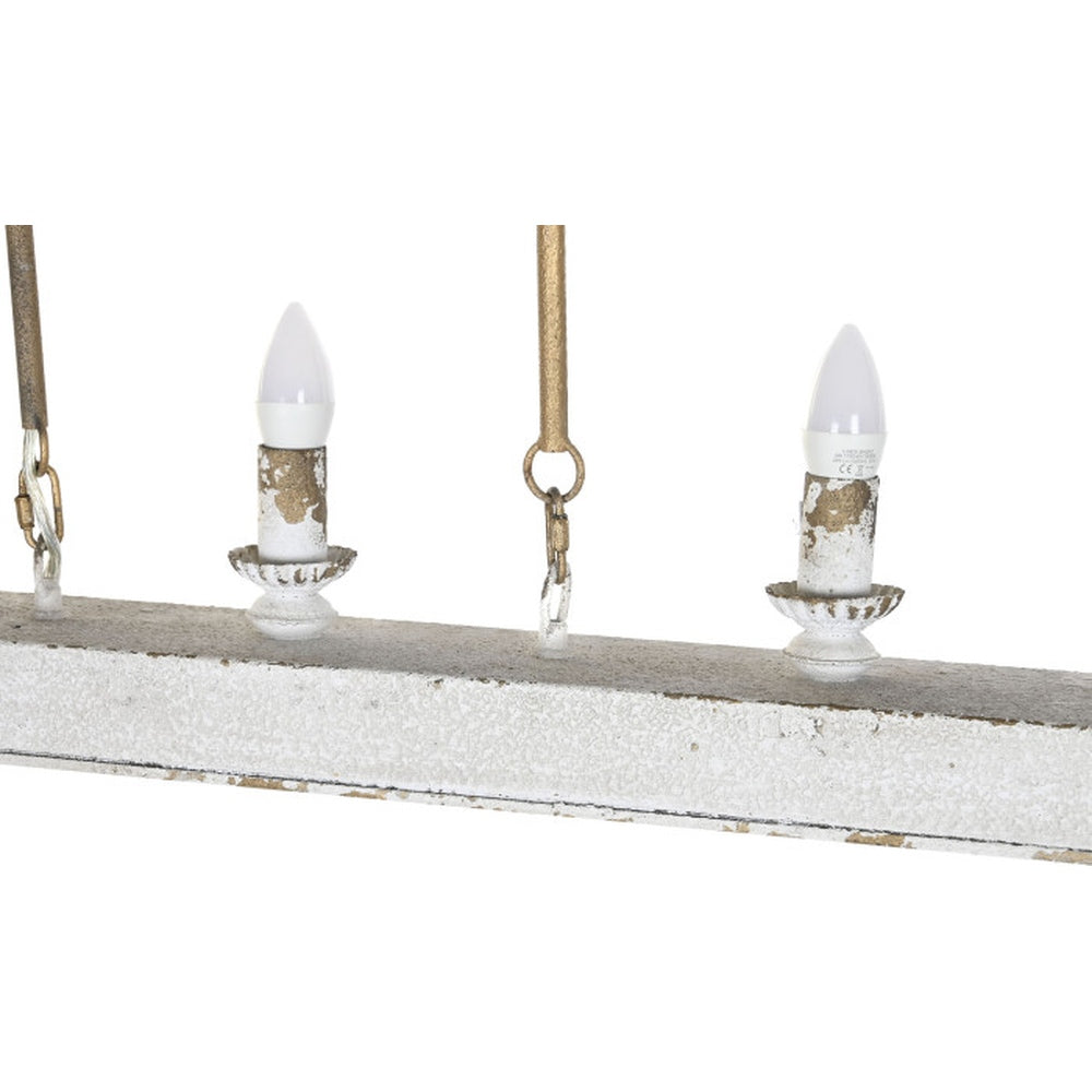 Lampadario Country Chic in Abete Bianco e Metallo Dorato