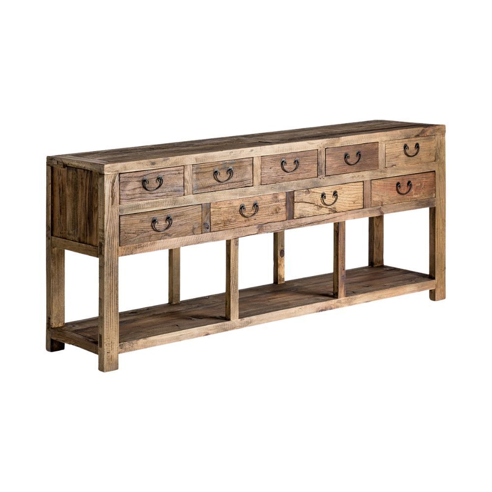Consolle Coloniale in Legno di Pino Riciclato Anticato