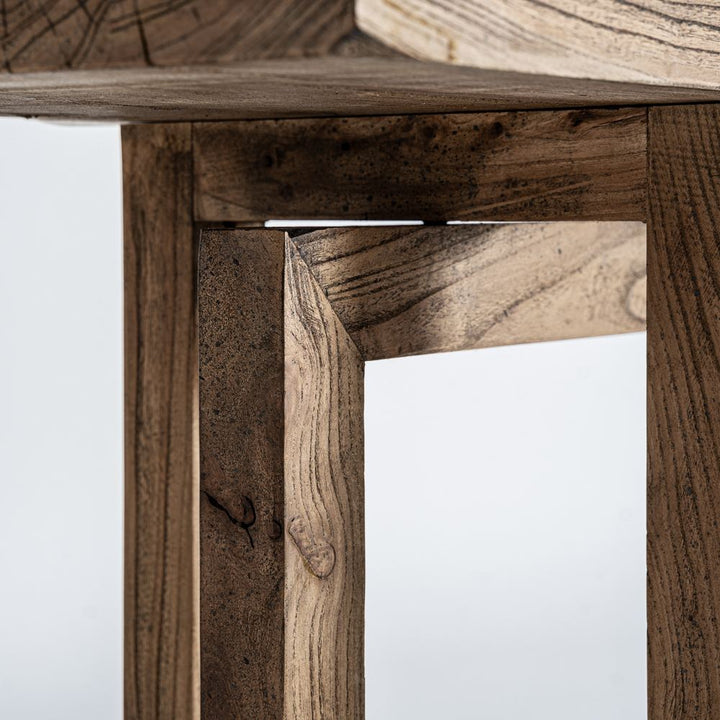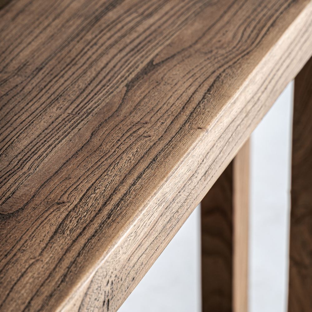 NOTE: Legno massello riciclato, finitura naturale marrone, dimensioni 200×40×76 cm, peso 28,4 kg, piano spesso 6 cm, gambe 6×5×70 cm, distanza tra gambe 123 cm, portata 50 kg, prodotto smontabile, lavorazione artigianale.