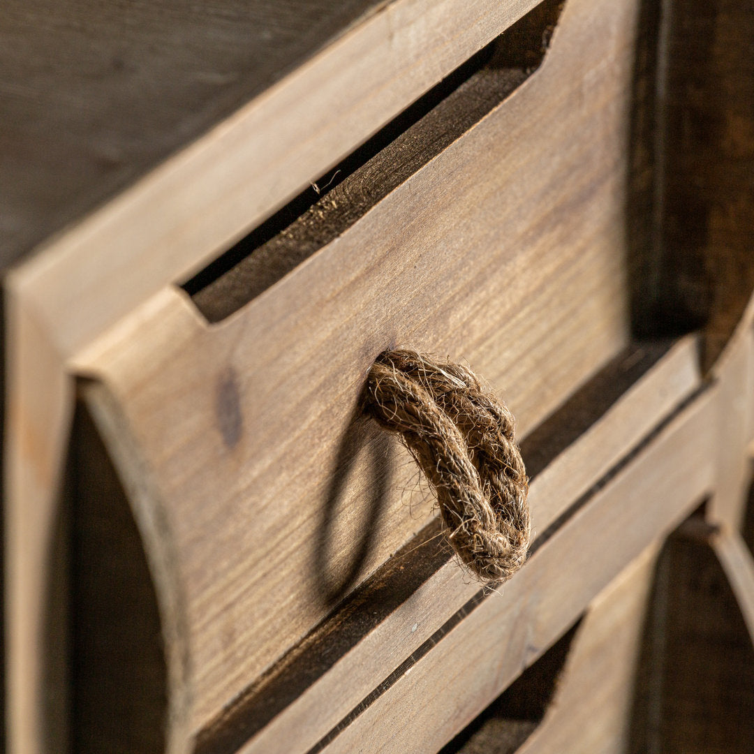 Le maniglie dei cassetti e delle ante in corda sono il dettaglio che fa la differenza, conferendo al comò un'atmosfera genuina e naturale. Sono il tocco finale che esalta la sua bellezza e la sua praticità.