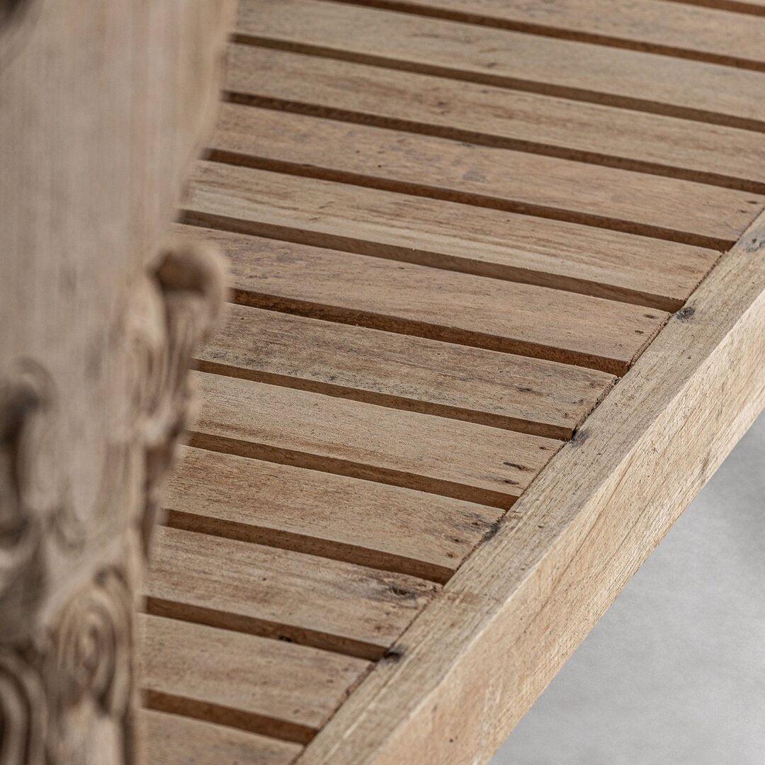 Il design etnico si contraddistingue per dettagli autentici e materiali pregiati che raccontano tradizioni e culture lontane. Questa consolle dallo stile unico è perfetta per arredare ambienti eleganti con un tocco di esotismo e autenticità. Realizzata in legno massello di teak, famoso per la sua resistenza e le bellissime venature naturali, la consolle presenta una struttura robusta con un peso di 102 kg. Le dimensioni generose (274 x 45 x 88 cm) la rendono ideale per ingressi, soggiorni o spazi commerciali. Il piano ha uno spessore di 1,9 cm, e le gambe (19 x 9 x 7,5 cm) offrono grande stabilità, supportando fino a 200 kg. Lo spazio interno (252 x 38 x 57 cm) è pratico e funzionale. Imperfezioni come nodi, segni e crepe naturali aggiungono valore, rendendo questo mobile un pezzo unico in stile etnico.