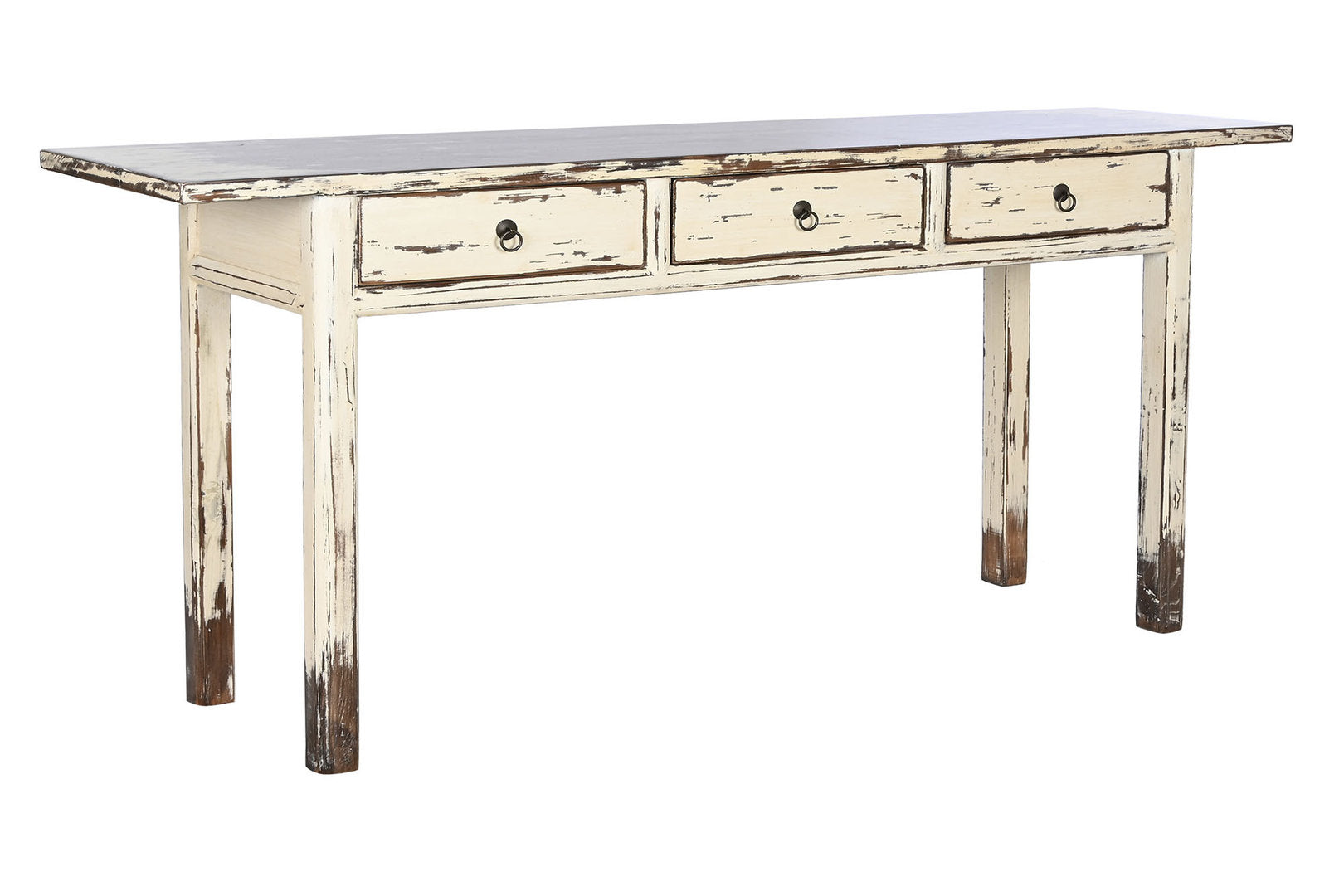 Porta un tocco di charme rustico e un senso di lavoro artigianale nella tua casa con la nostra consolle tavolo da lavoro 3 cassetti. Questo elegante mobile unisce la funzionalità dei cassetti alla bellezza del design country bianco anticato shabby chic.