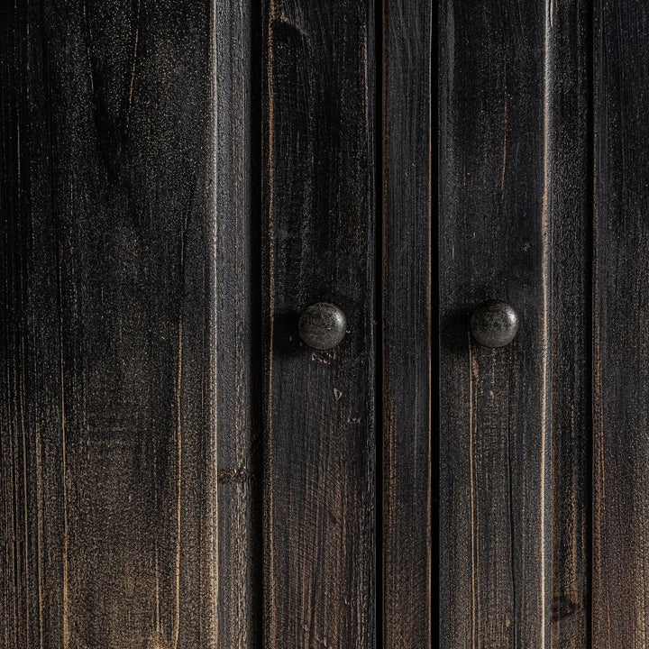 NOTE: Legno massello marrone, 6 porte, ripiano fisso 34 cm, vano 35x38x67 cm, prodotto artigianale.