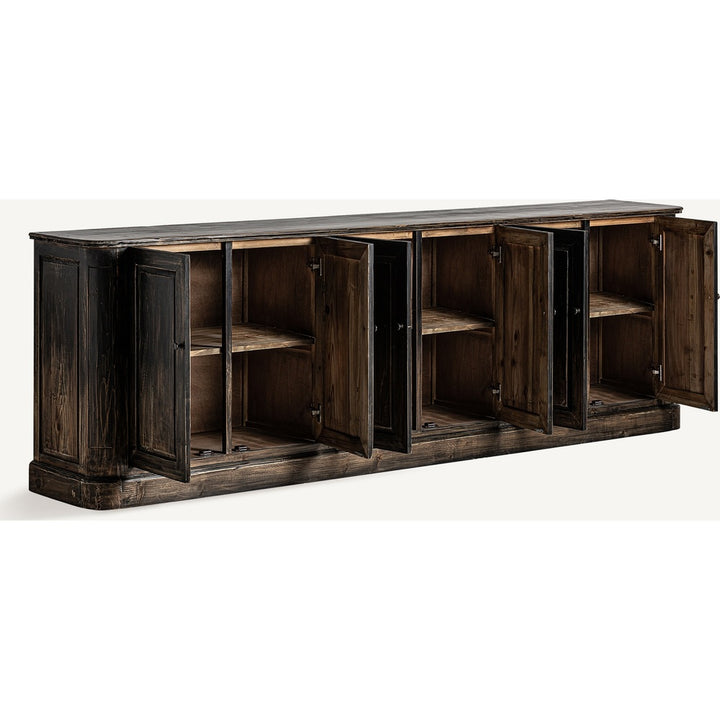 Lo stile country rustico unisce calore tradizionale e materiali autentici, perfetto per creare atmosfere accoglienti in casali, cucine o soggiorni dal gusto vintage. La credenza country per casali è realizzata in legno massello marrone naturale, con finitura che esalta venature e robustezza. Con misure di cm 260 x 45 x H 85, presenta sei porte che si aprono su vano interno (35 x 38 x 67 cm) con ripiano fisso (altezza 34 cm), ideale per stoviglie, oggetti o decorazioni. La struttura solida garantisce resistenza e versatilità. Ogni elemento è artigianale per un design semplice elegante. Perfetto per ambienti rustici, aggiunge spazio e carattere tradizionale. Proposto con sconti fino al 70% su Ethnic Chic.
