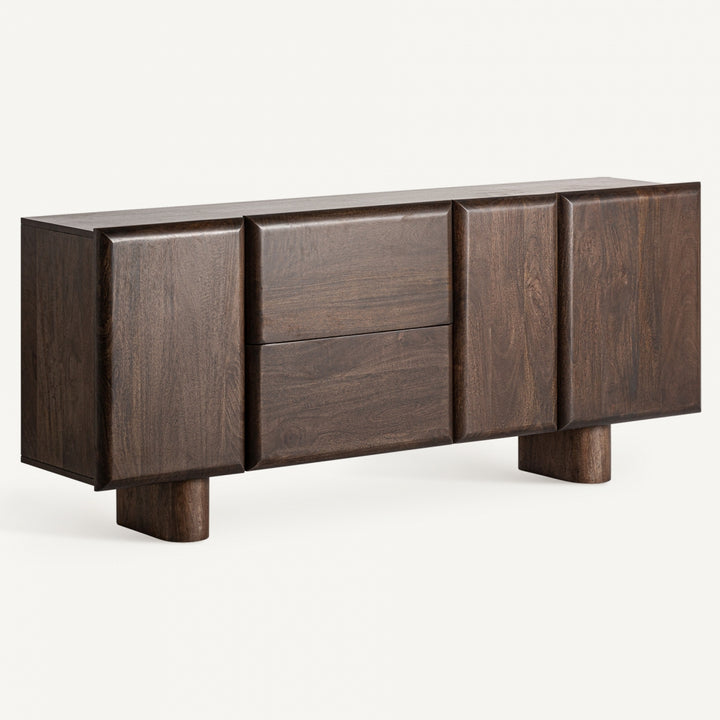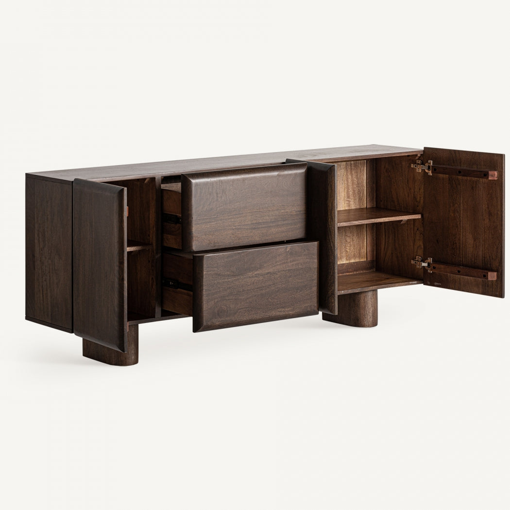 Lo stile Art Déco, noto per le sue linee eleganti, proporzioni equilibrate e materiali di alta qualità, è reinterpretato in chiave minimalista in questa credenza di design. Con un'estetica essenziale e dettagli raffinati, questo pezzo rappresenta una fusione perfetta tra lusso e funzionalità, rendendolo ideale per ambienti moderni e ricercati. Realizzata artigianalmente in legno massello di mango, questa credenza si distingue per la finitura naturale e le leggere imperfezioni, come nodi e sfumature, che ne esaltano l’autenticità. Con dimensioni di cm 180 x 40 H 77 e un peso di 79,3 kg, offre un’ampia capacità di organizzazione grazie a due cassetti (52 x 29 x 20 cm), tre ante e ripiani interni regolabili con altezza di 26 cm. Perfetta per sale da pranzo contemporanee, living raffinati o uffici moderni, questa credenza è un complemento d’arredo versatile e sofisticato. Ideale per chi cerca buffet Art Déco, questa credenza coniuga un design senza tempo con una lavorazione artigianale di alta qualità, valorizzando ogni spazio con eleganza e funzionalità.