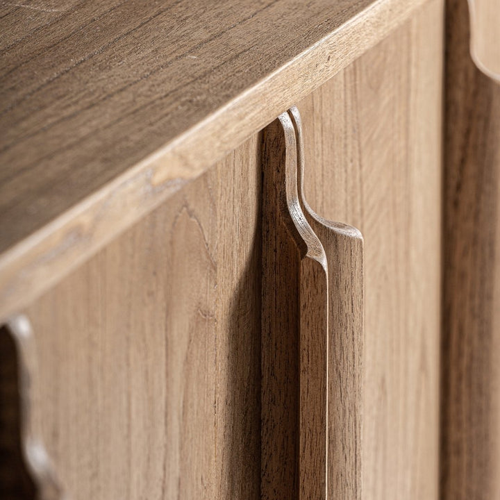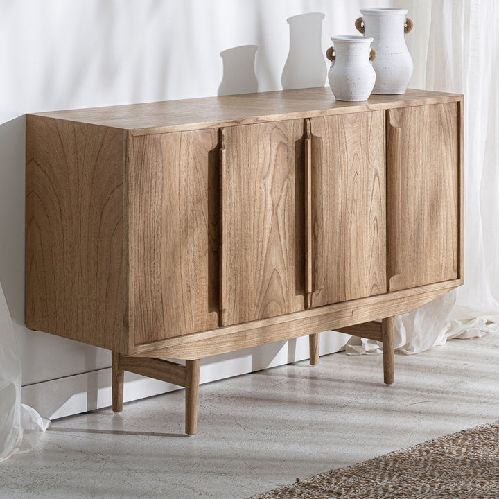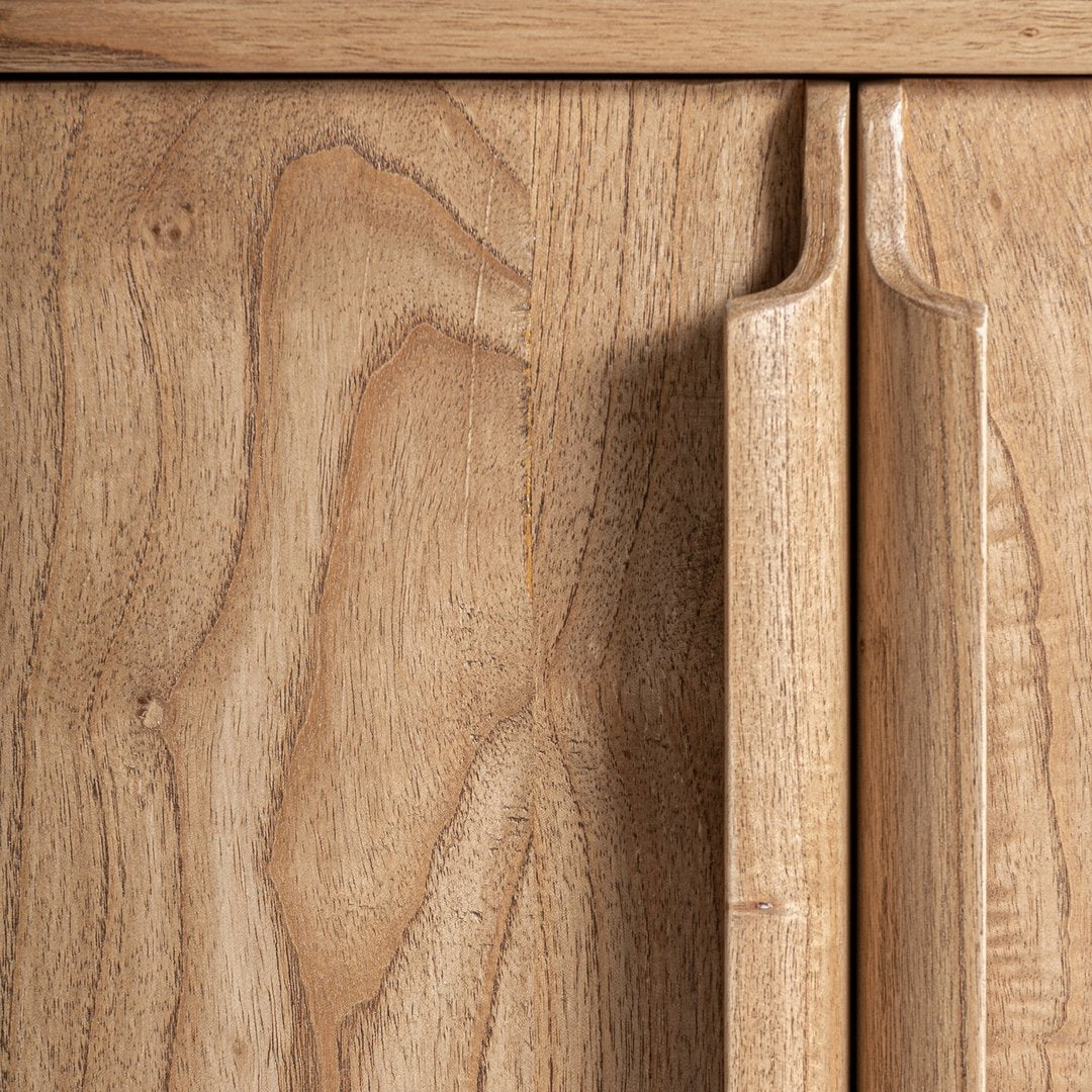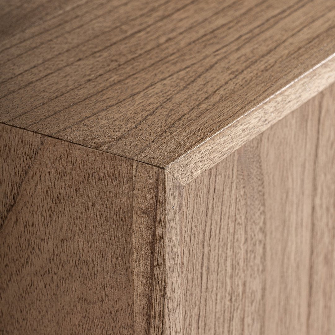 Una meravigliosa in stile moderno con chiari accenti mid-century, evidenziato dalle linee pulite, le forme geometriche semplici e le gambe in legno inclinate. Il legno naturale con la sua vistosa venatura aggiunge un tocco di calore e un'estetica organica. Le maniglie incassate e l'assenza di metalli evidenti contribuiscono a un design minimalista ed elegante. È un pezzo versatile che potrebbe integrarsi in ambienti sia moderni che retrò, portando con sé una certa eleganza senza tempo e una forte presenza di design.