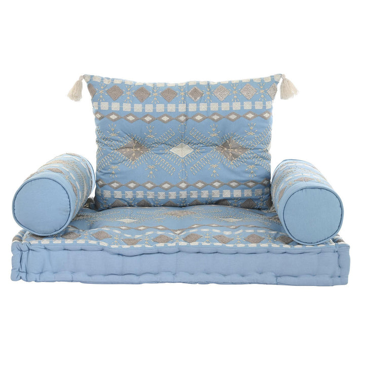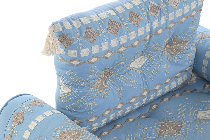 L'essenza del stile bohemian con questo set di 4 cuscini per poltrona, celebra la creatività e l'eclettismo tipici di questo design. Realizzati in cotone ricamato di alta qualità, i cuscini presentano motivi geometrici e ornamenti nei toni dell'azzurro e beige, riflettendo l'influenza di elementi tribali ed etnici. Questa combinazione non solo impreziosisce l'arredo, ma offre anche comfort e funzionalità. Con dimensioni di 90x50 cm e un'altezza di 55 cm, e un peso di 11 kg, questi cuscini sono ideali per aggiungere un tocco di stile boho-chic a qualsiasi poltrona. Perfetti per spazi informali o casual, questi cuscini possono anche essere utilizzati efficacemente come materassi per pedane, trasformando semplici sedute in isole di relax e stile. Portate un soffio di libertà creativa nel vostro spazio con questi cuscini, che rendono ogni momento di relax un'esperienza unica e accogliente.