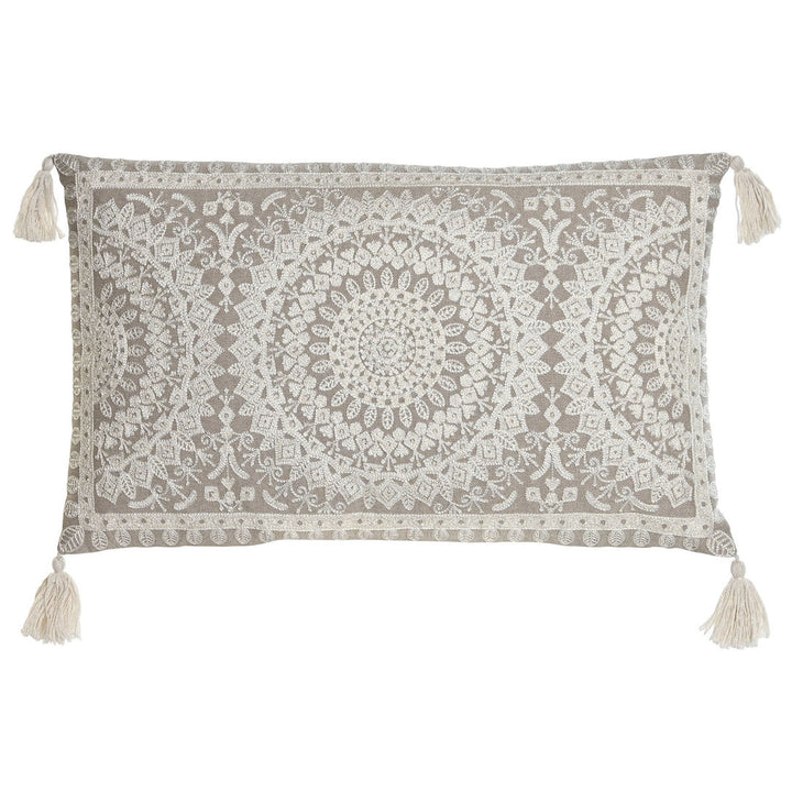 Intricato il design del  cuscino per divano mandala, un esemplare perfetto dello stile boho chic. Realizzato in cotone di colore corda con ricami in beige, questo cuscino da 60x35 cm e altezza di 15 cm, pesa solo 0,75 kg, combinando eleganza e comfort. Il disegno mandala centrato è circondato da dettagli ornamentali che aggiungono un tocco di fascino visivo, ideale per qualsiasi spazio che cerca di incorporare elementi di decoro sofisticati con un tocco spirituale. Perfetto per aggiungere un elemento di calma e stile in ogni ambiente, è disponibile per l'acquisto online, offrendo una facile soluzione per elevare l'estetica della vostra casa.