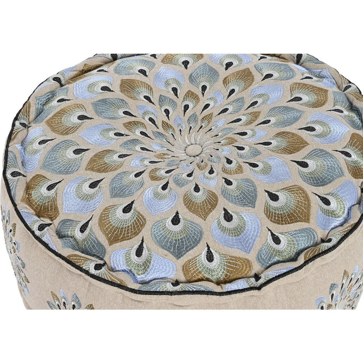 Cuscino da Pavimento Bohemian in Cotone Ricamato Beige e Celeste