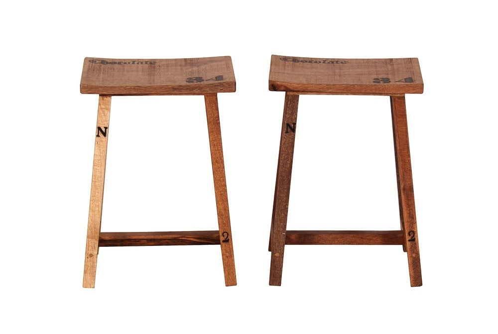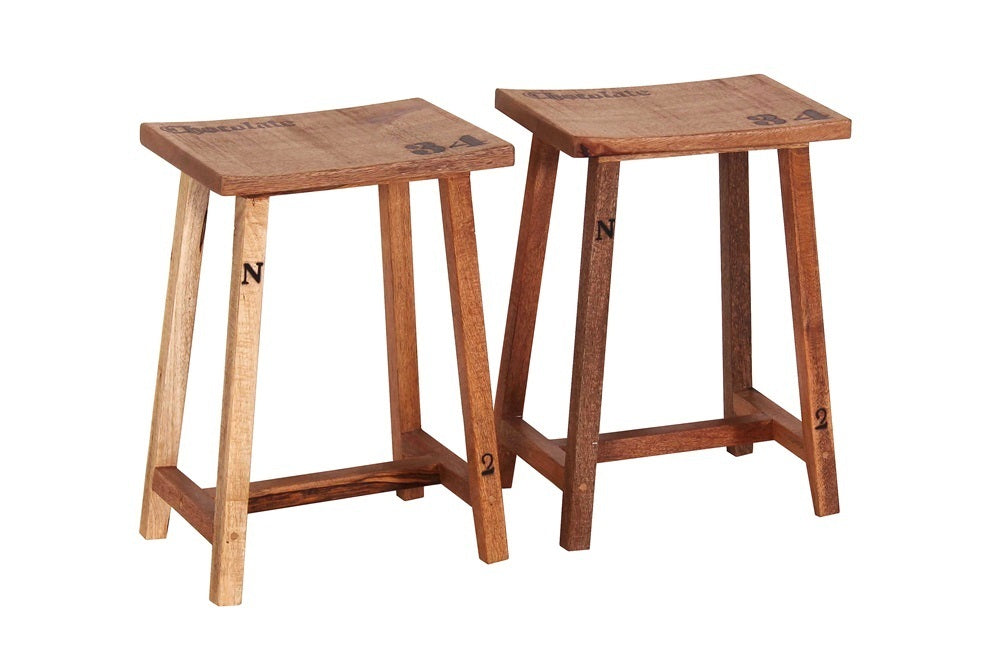 Sgabelli Comodi: I due sgabelli inclusi presentano sedute in legno con una barra centrale, offrendo un comodo appoggio per i piedi.