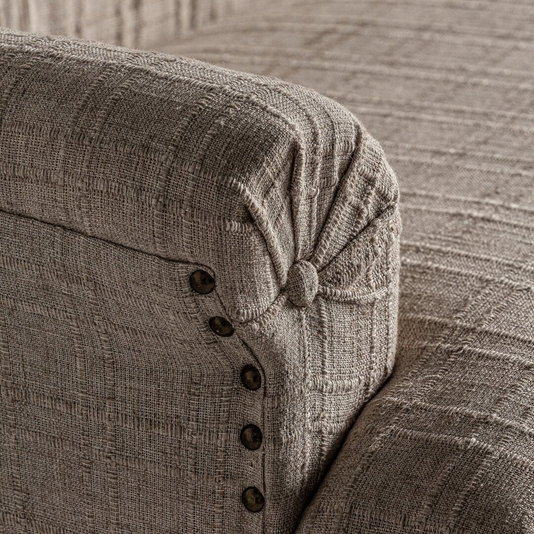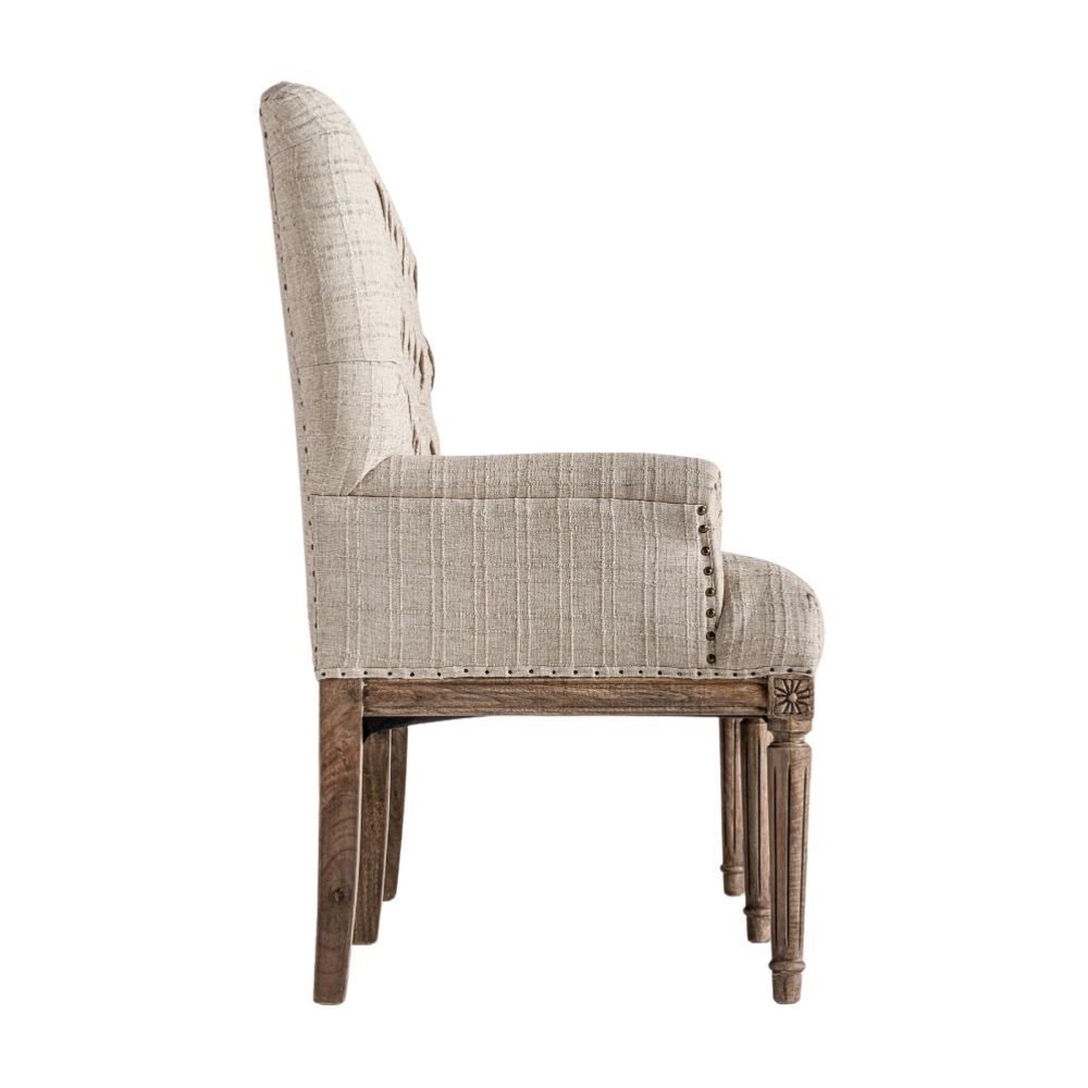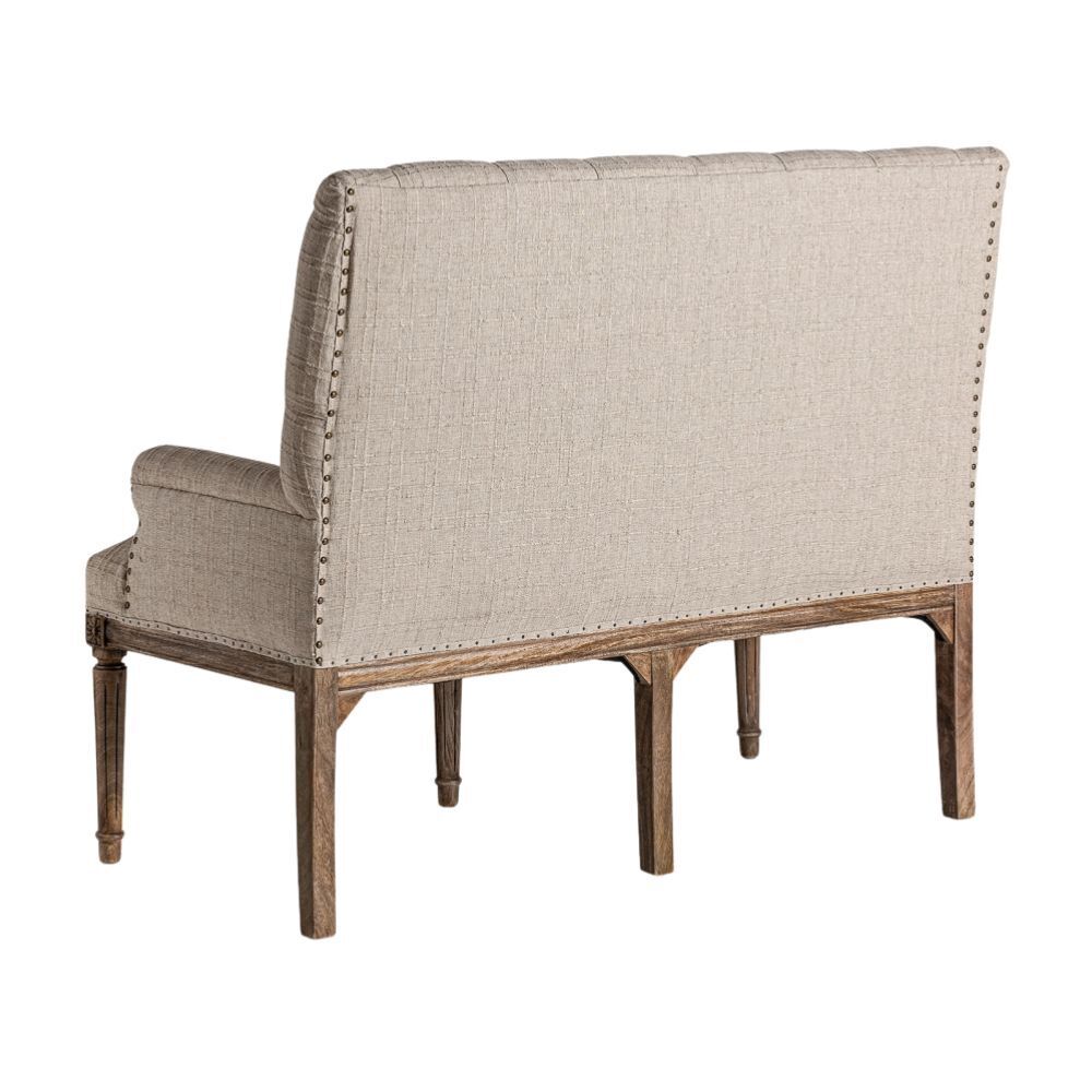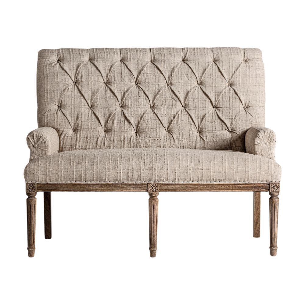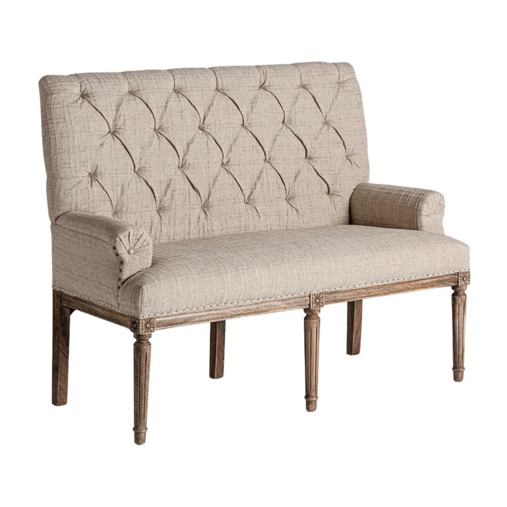 Realizzato in legno di mango beige, questo divanetto si distingue per il suo raffinato rivestimento in poliestere imbottito con schiuma ad alta densità, che garantisce massimo comfort. Lo schienale alto e trapuntato dona un tocco di eleganza, mentre i dettagli intagliati sulle gambe esaltano la lavorazione artigianale. Perfetto per aggiungere charme a qualsiasi spazio, è un pezzo fatto a mano, con leggere variazioni di tonalità e segni naturali del legno che lo rendono unico. Peso: 22 kg. Ideale per chi cerca un arredo raffinato e confortevole, in grado di valorizzare ambienti classici e contemporanei.