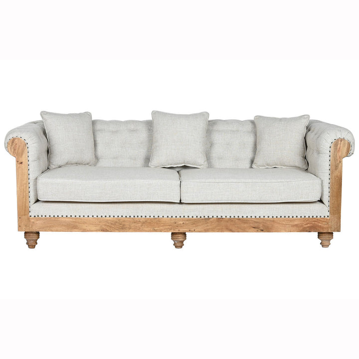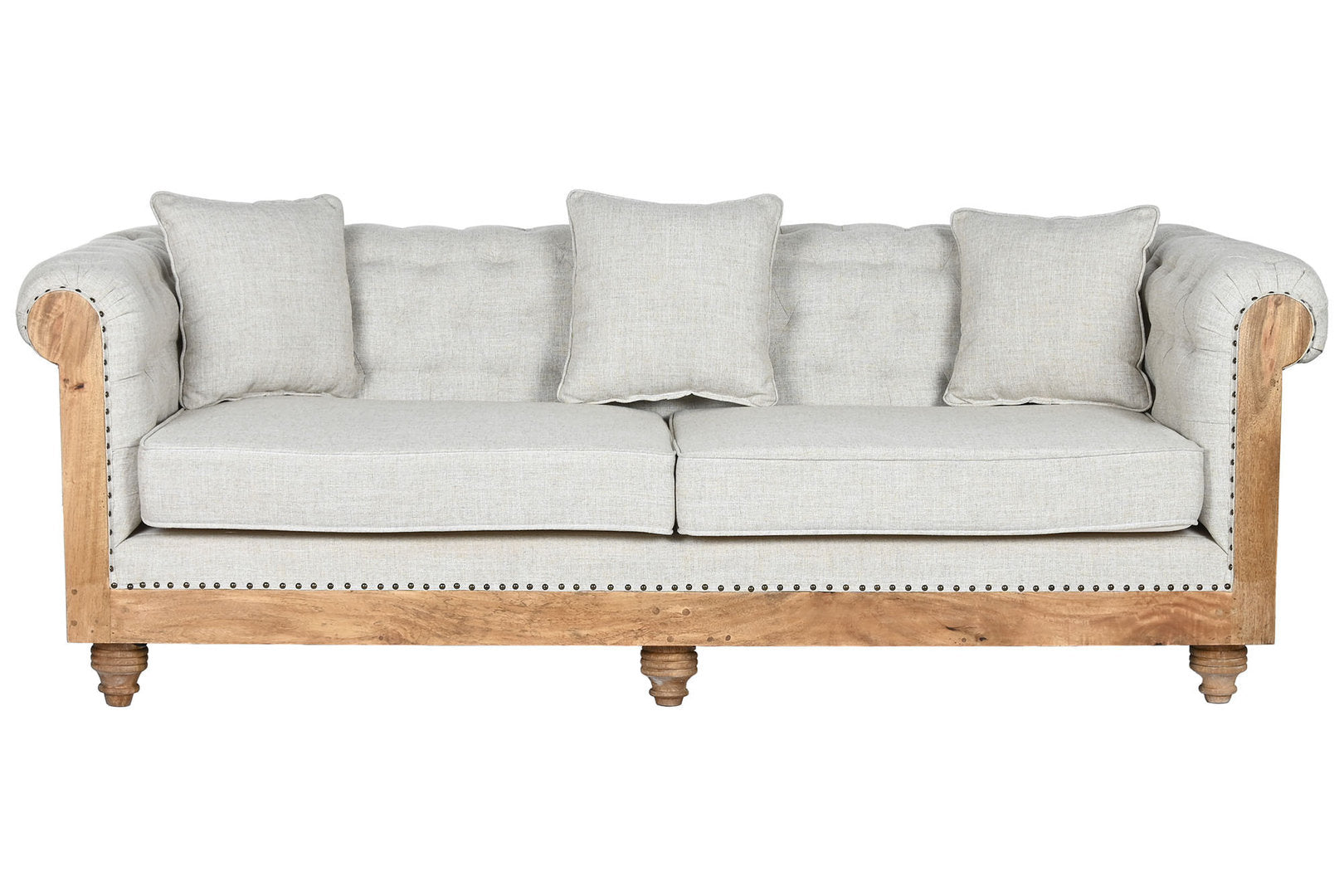 Lo stile country chic combina eleganza classica e comfort rustico, creando ambienti accoglienti e raffinati. Questo design valorizza l'uso di materiali naturali e dettagli artigianali, rendendolo perfetto per chi cerca un arredamento che unisca tradizione e modernità. Il divano francese country chic è un esempio eccellente di questo stile, con una struttura in legno di mango e rivestimento in cotone. Misurando 225 x 90 H 80 cm e pesando 65 kg, questo divano offre un'altezza seduta di 48 cm, garantendo comfort e supporto. La lavorazione capitonné dello schienale e della seduta, insieme ai dettagli delle borchie, aggiunge un tocco di eleganza vintage. I cuscini inclusi aumentano il comfort, rendendolo ideale per arricchire qualsiasi salotto con un tocco di classe. Perfetto per chi desidera unire estetica e funzionalità nel proprio arredamento, creando spazi invitanti e ricercati.