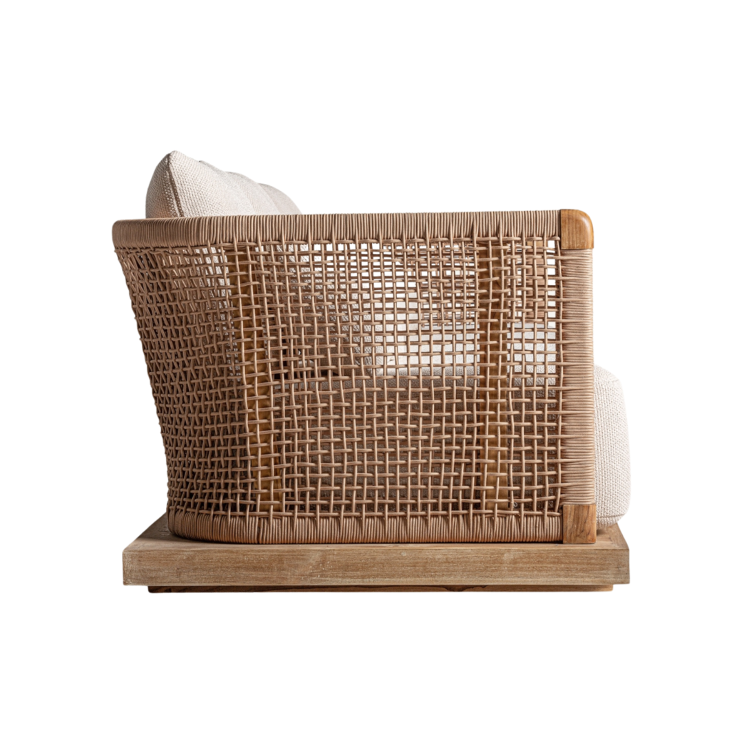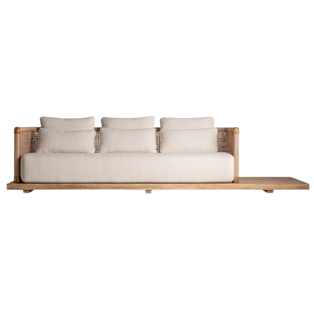 Scopri l'eleganza rilassata del sofà Boho, ideale per arricchire spazi interni ed esterni con un tocco di stile naturale. Realizzato con una base robusta in legno di teak riciclato e impreziosito da dettagli in rattan, questo sofà combina durabilità e design estetico. Dimensioni complessive sono 320 cm di larghezza, 90 cm di profondità e 70 cm di altezza, offrendo ampio spazio per il relax. Il sofà supporta un peso fino a 320 kg grazie alla sua costruzione solida. I cuscini confortevoli, dimensionati per il sedile a 227x82x30 cm e per lo schienale a 65x20x48 cm, sono sfoderabili per una facile manutenzione. Con piedini regolabili per una stabilità ottimale, questo sofà è una scelta eccellente per chi cerca mobili da giardino di lusso con funzionalità e stile.