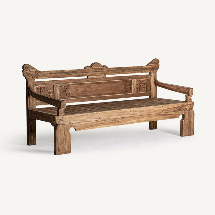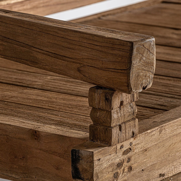 Con le sue dimensioni generose di cm cm 232 x 76 H 99 e il peso di 75 kg, il Divano Letto Etnico Teak è ideale per arredare sia ambienti interni che esterni come il giardino o la veranda.