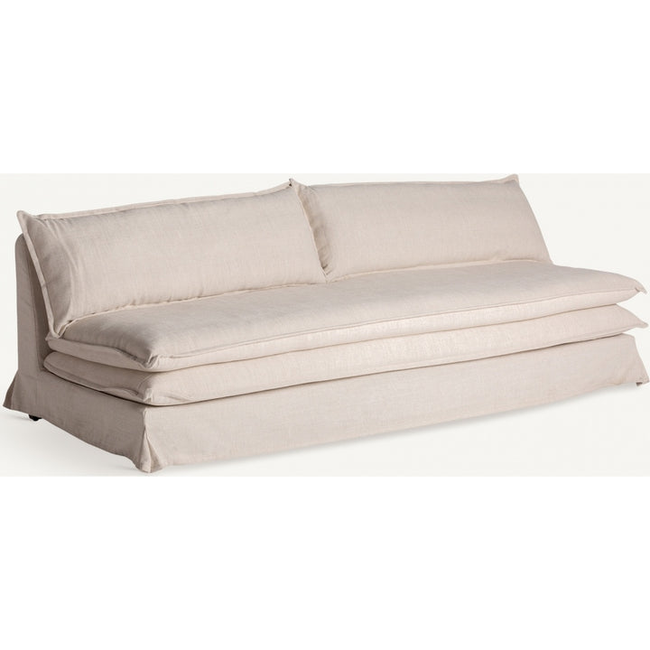 NOTE: Divano 3 posti, struttura smontabile, cuscini inclusi, portata 320 kg, finitura bianco sporco, stile nordico contemporaneo.